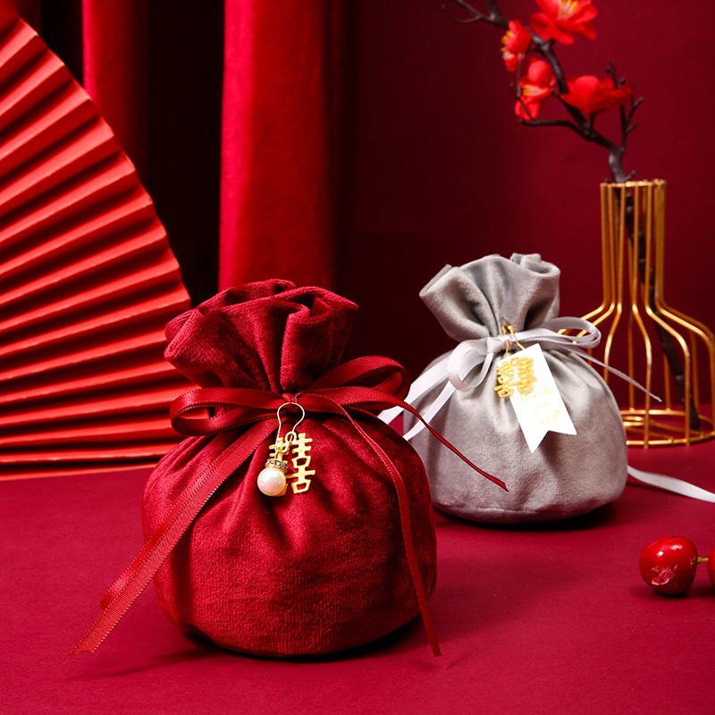 high grade gray: xi character pearl style (cloth bag + xi character + pearl + pin)