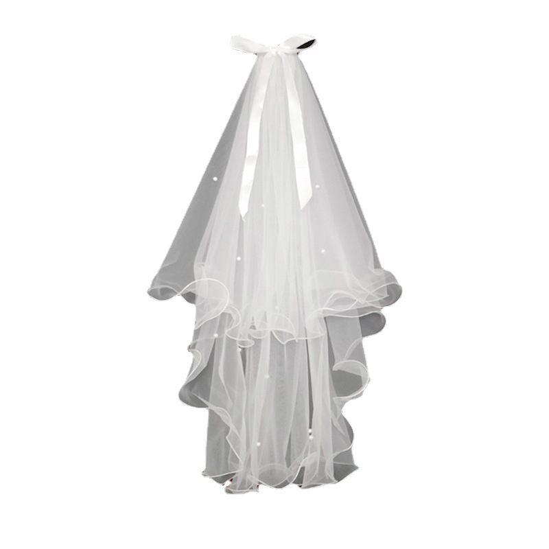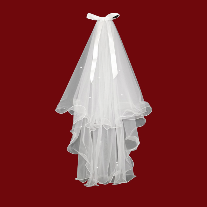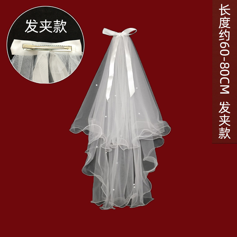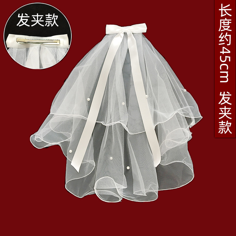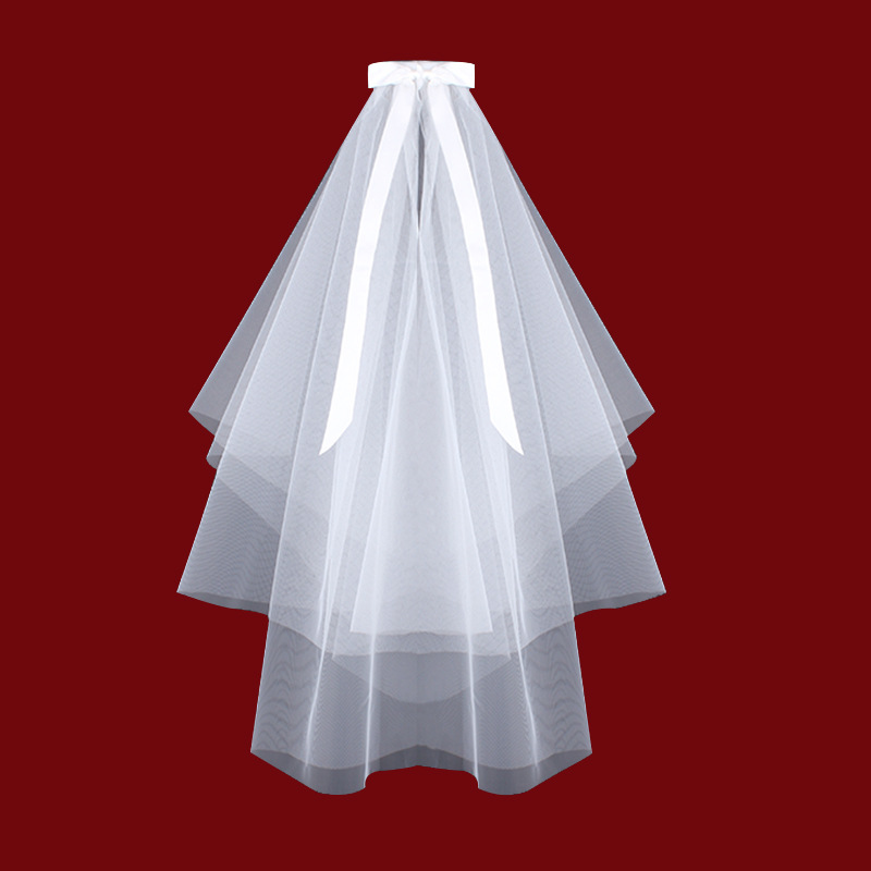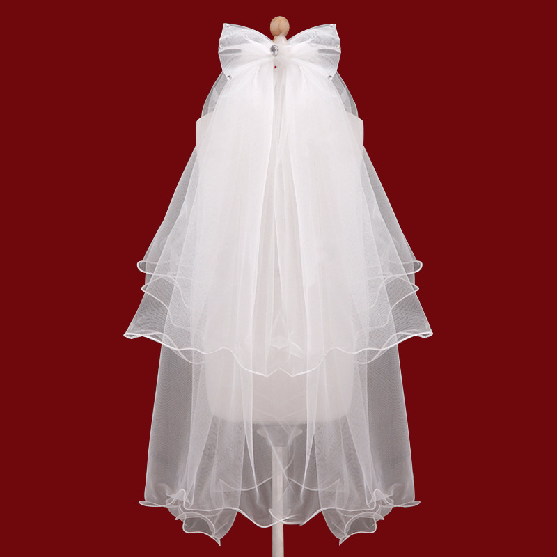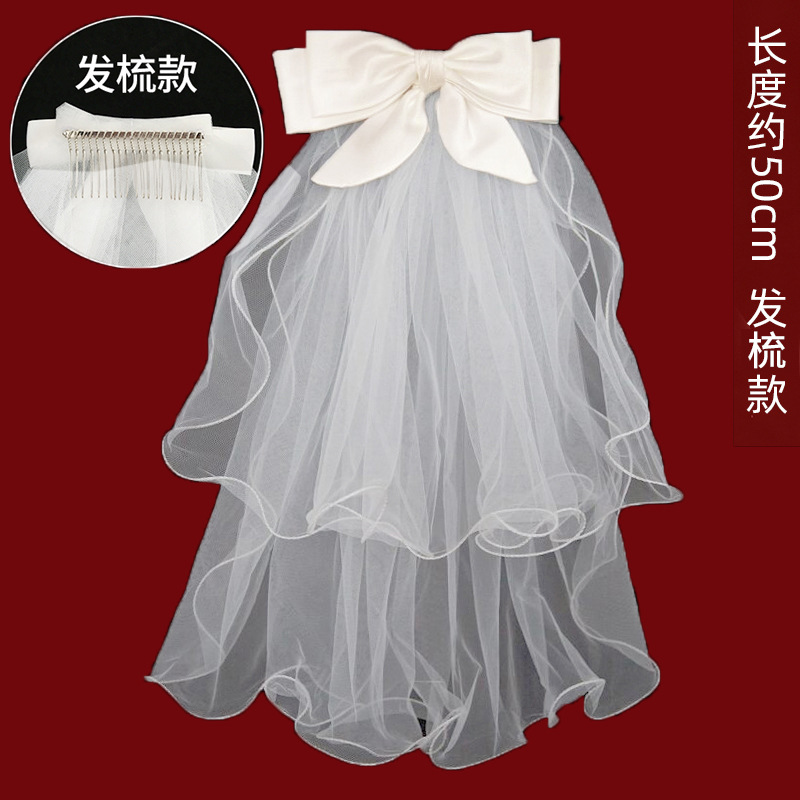 white double layer bow [hair comb]: 60cm-80cm