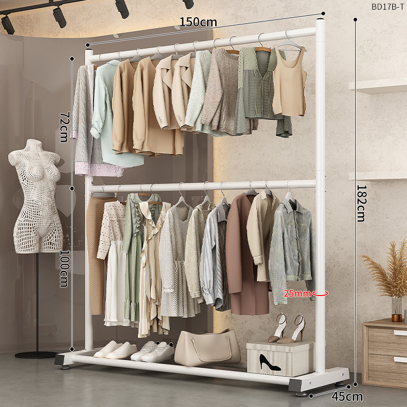150cm elegant white [extra thick-double hanger clothes] hanger clothes 70+18 pairs of shoes