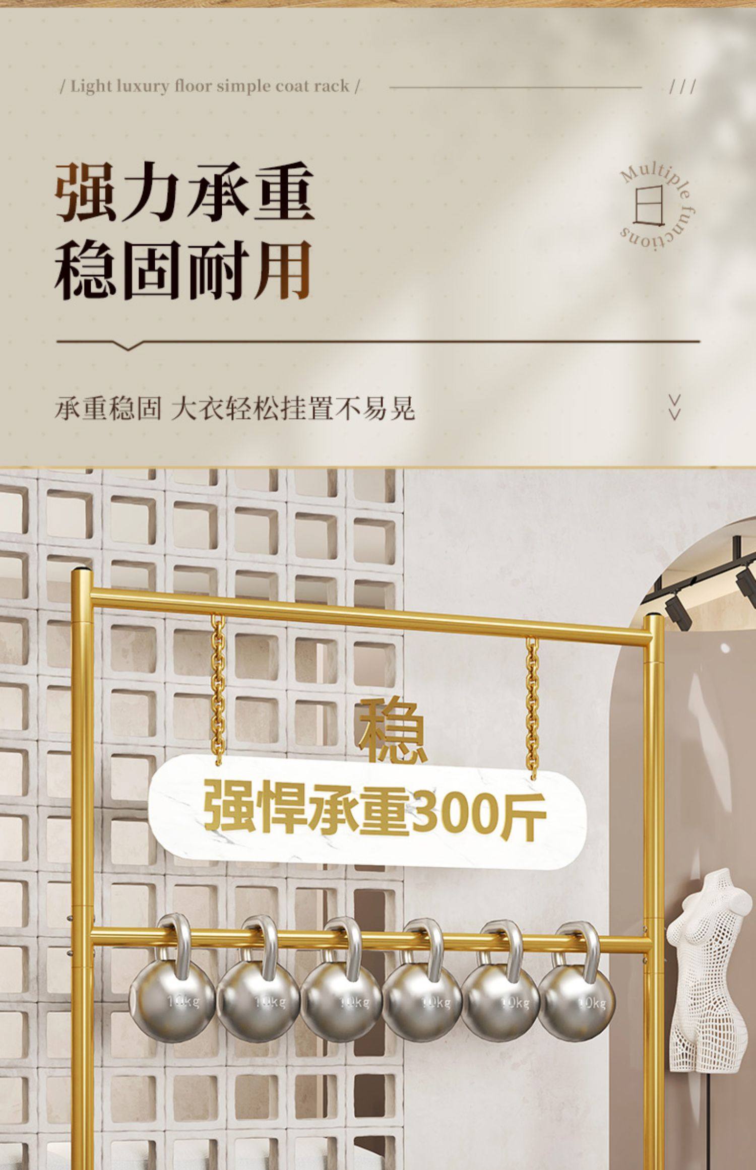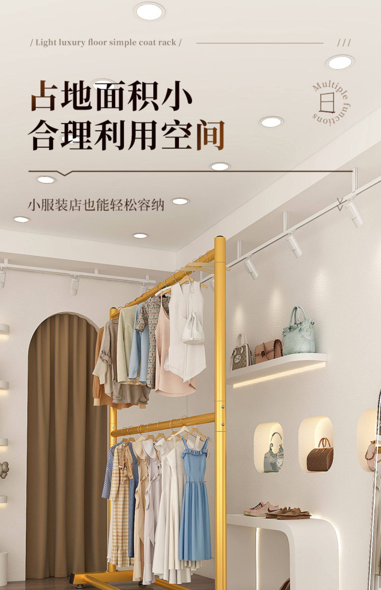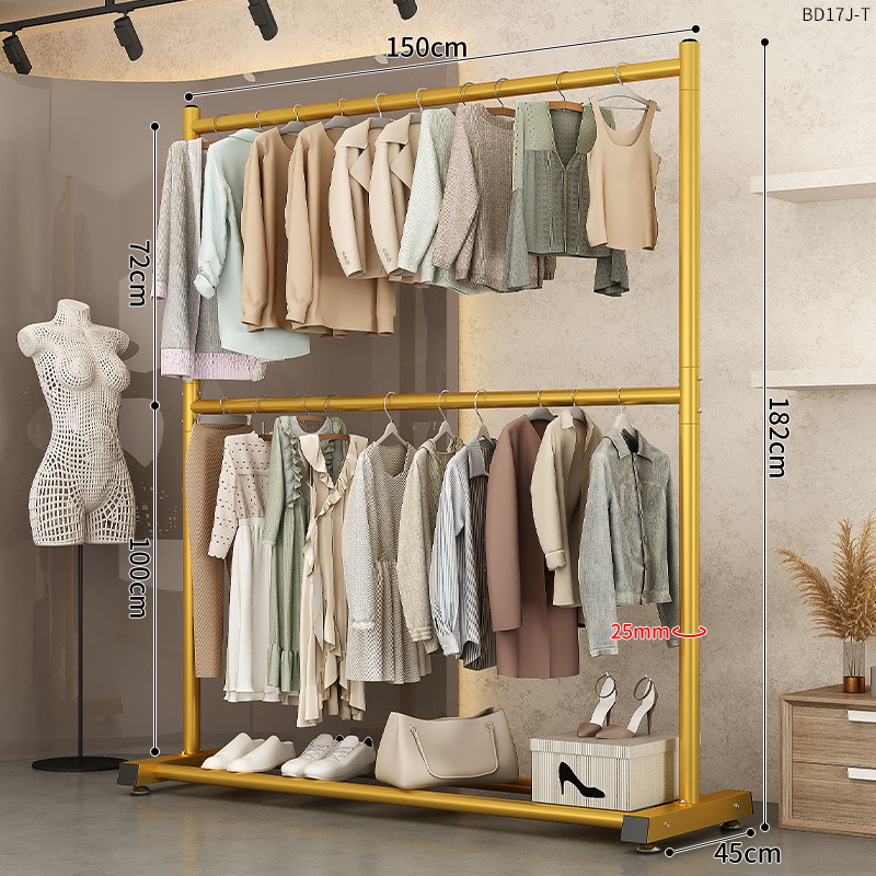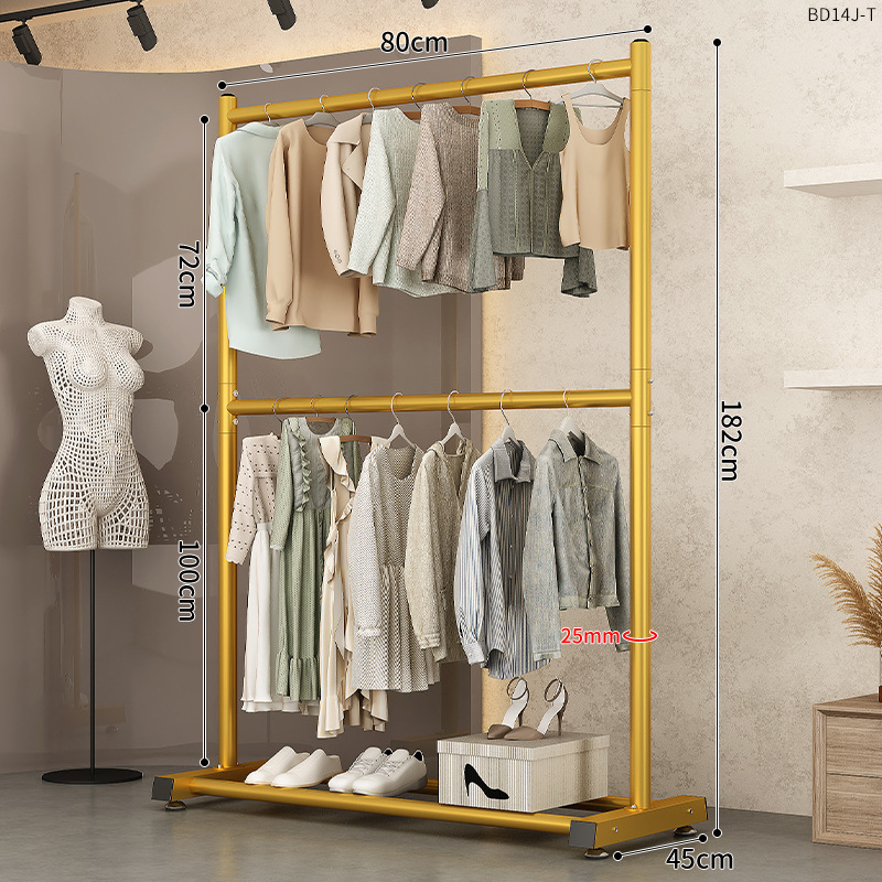 150cm light luxury gold [extra thick-double hanger clothes] hanger clothes 70+18 pairs of shoes