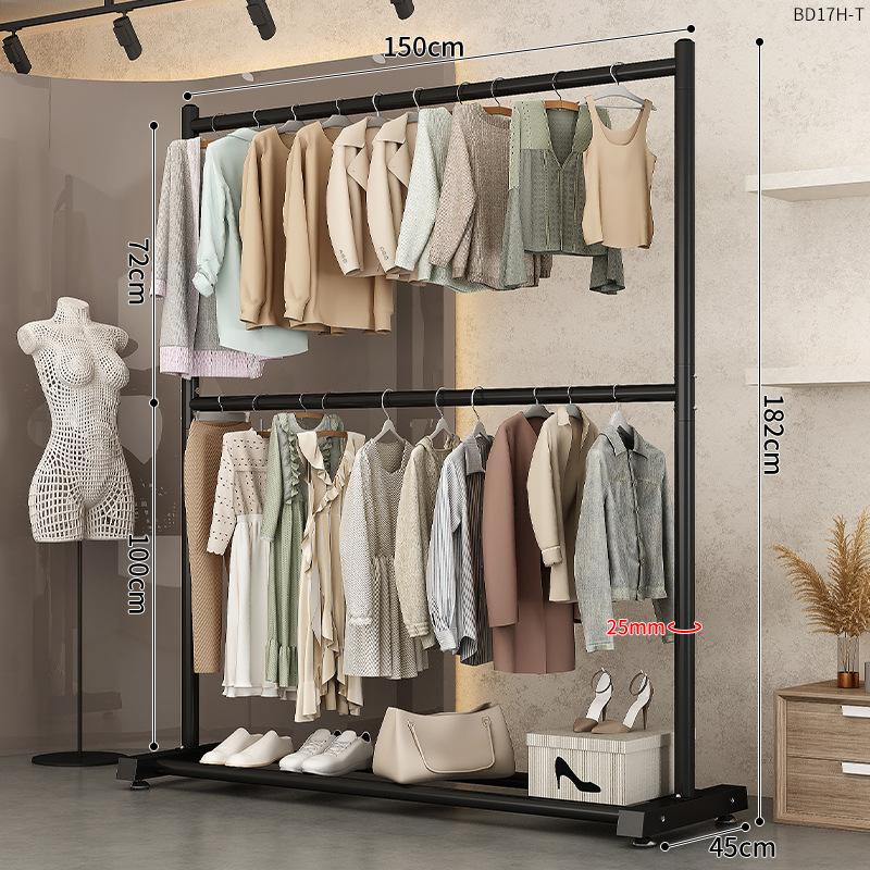 150cm classic black [extra thick-double hanger clothes] hanger clothes 70+18 pairs of shoes