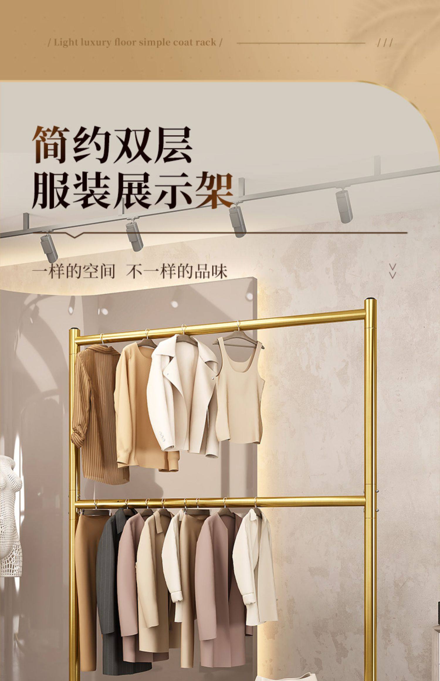 120cm light luxury gold [extra thick-double hanger clothes] hanger clothes 50+15 pairs of shoes