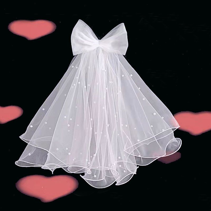 double-layer curling bow pearl white 40cm