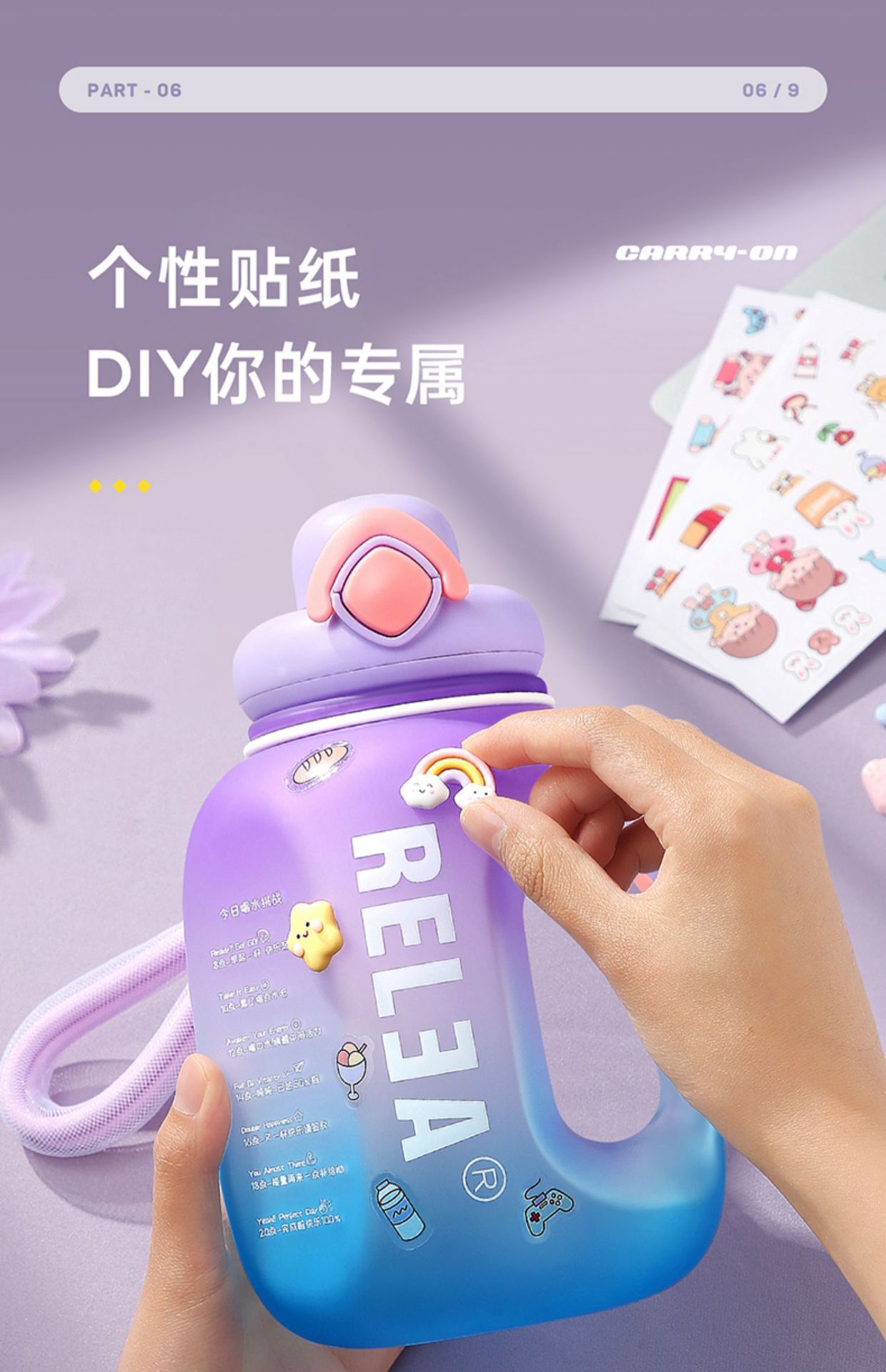 summer purple 1l [send lengthened cup brush + 3d three-dimensional stickers + diy stickers]: 1l-2.5l
