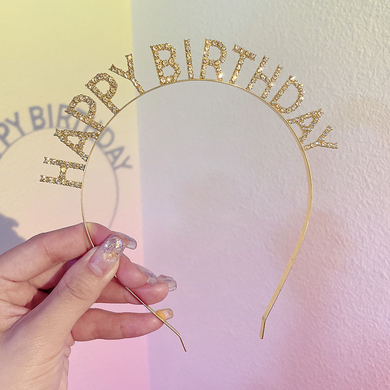 golden happy birthday headband