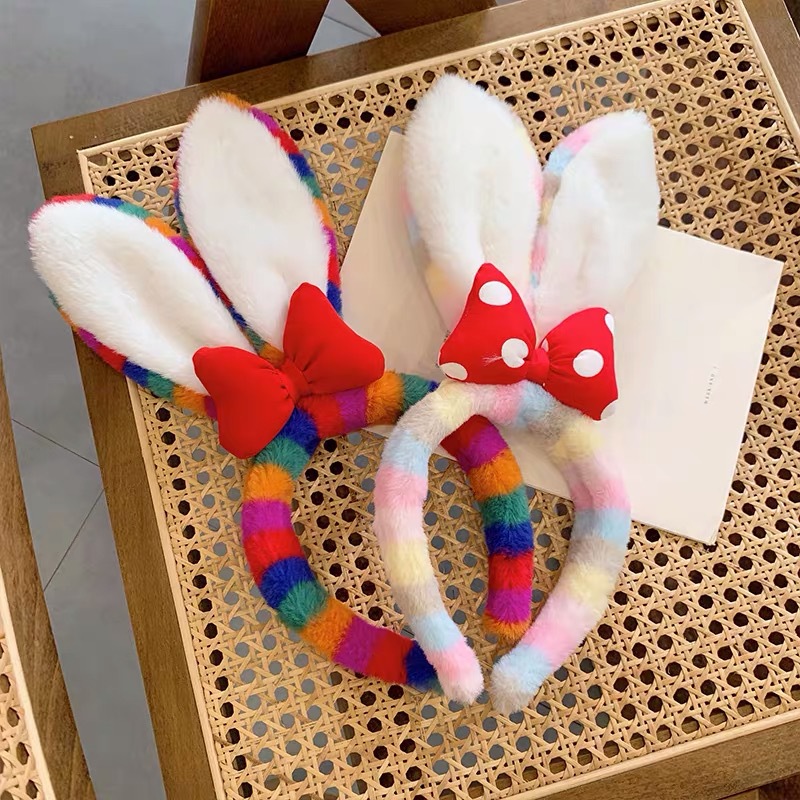 10# pink rainbow rabbit ears