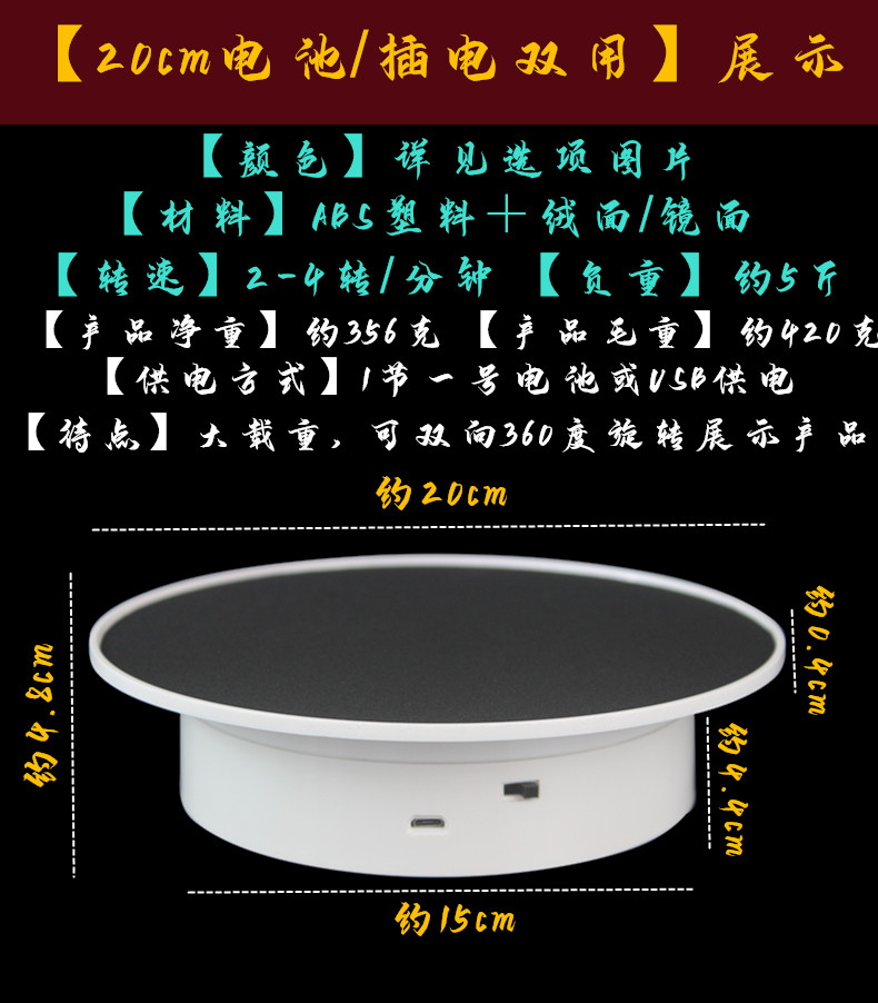 dual-purpose 20cm load-bearing 5kg white background black velvet (battery free)