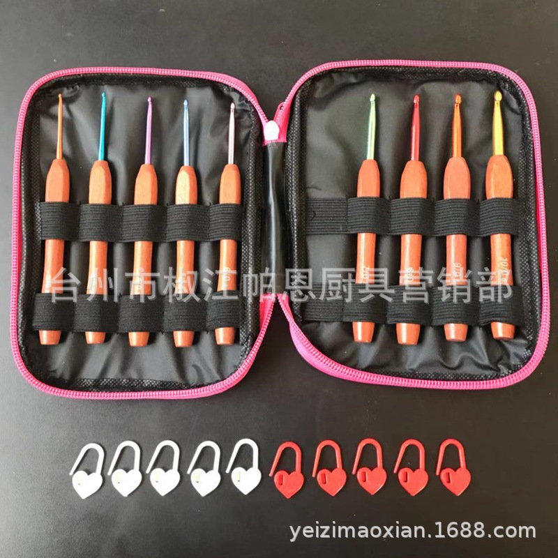 red wooden handle crochet pu bag