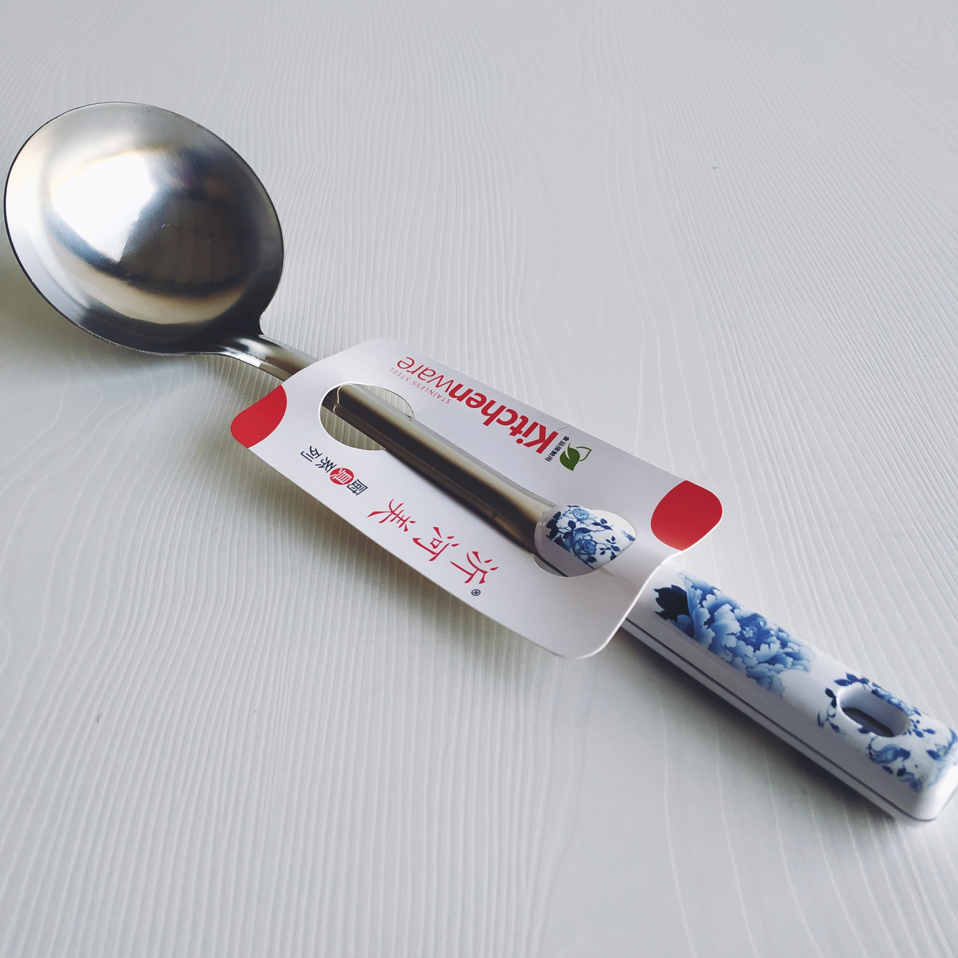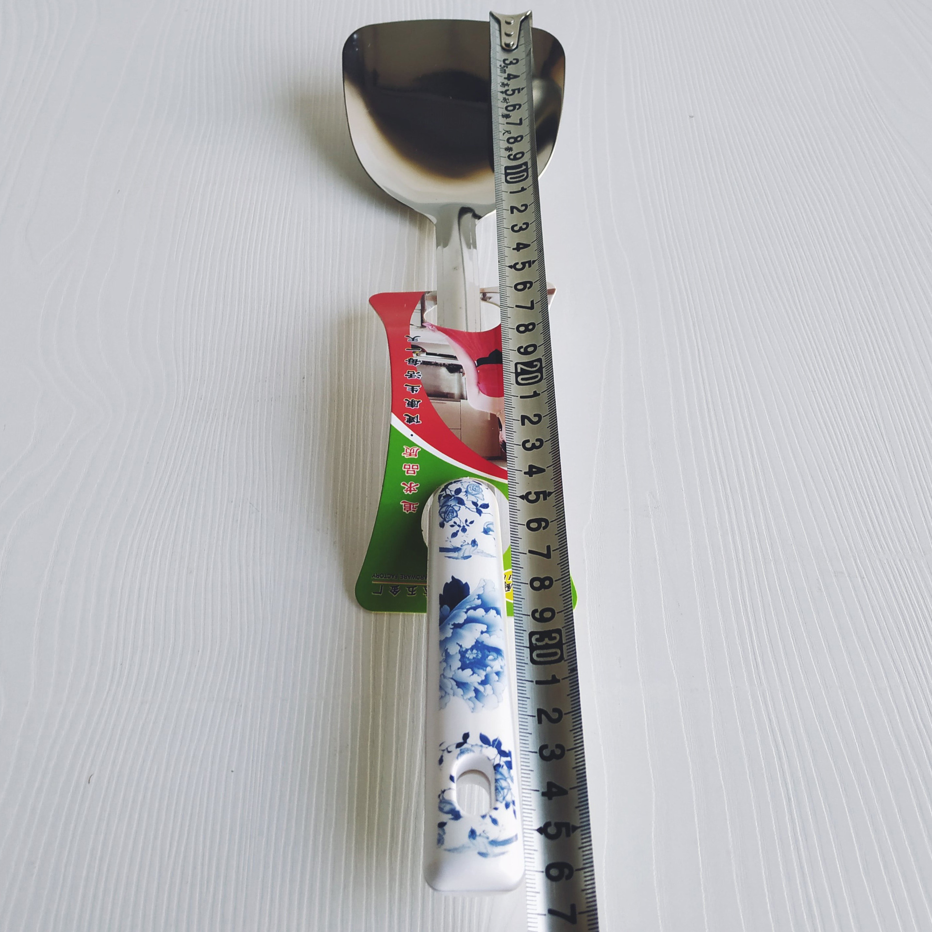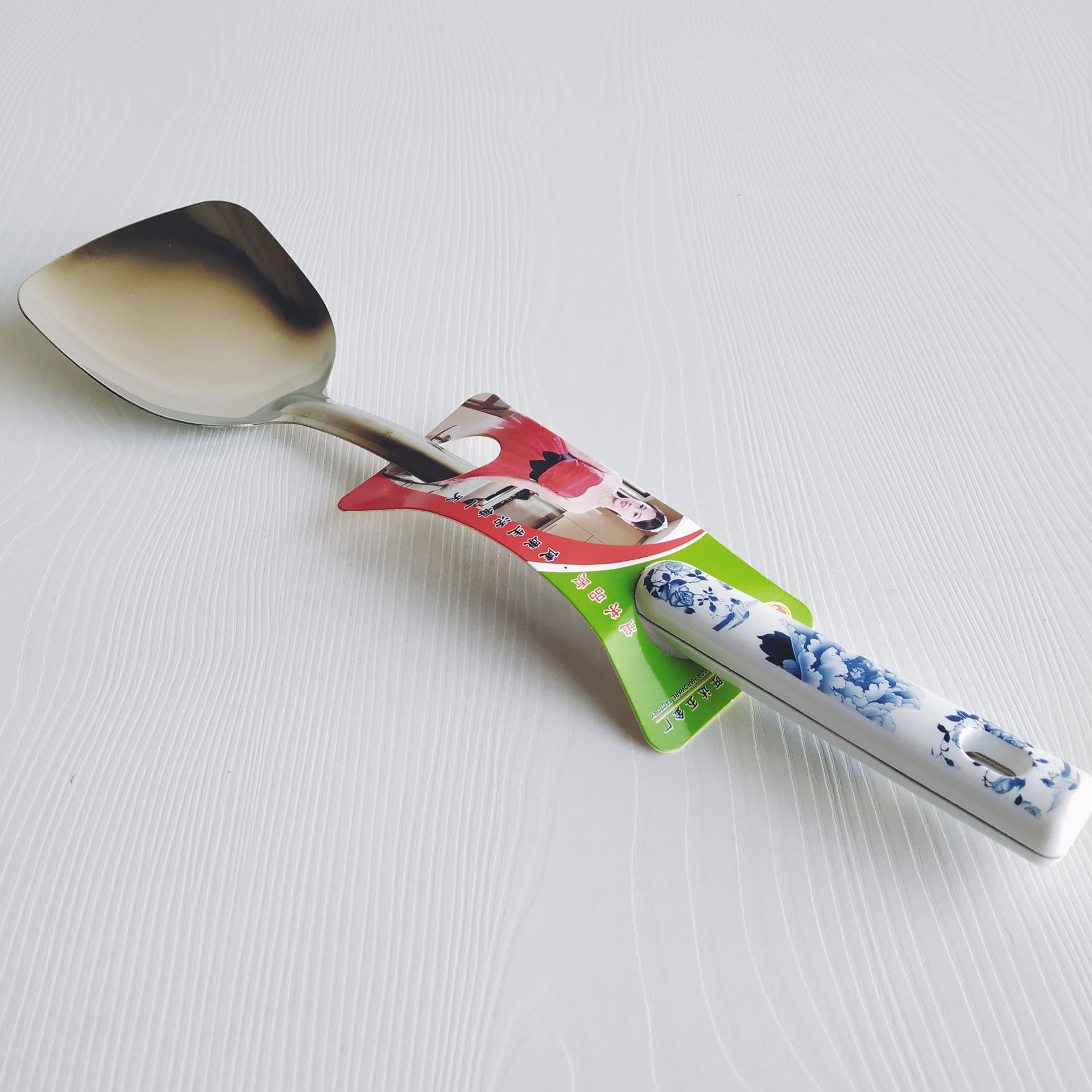blue and white handle