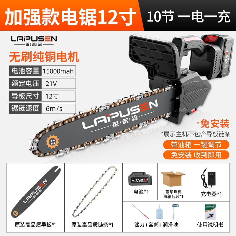 12-inch chainsaw package (15 2 batteries and 1 chain) paper box bulk