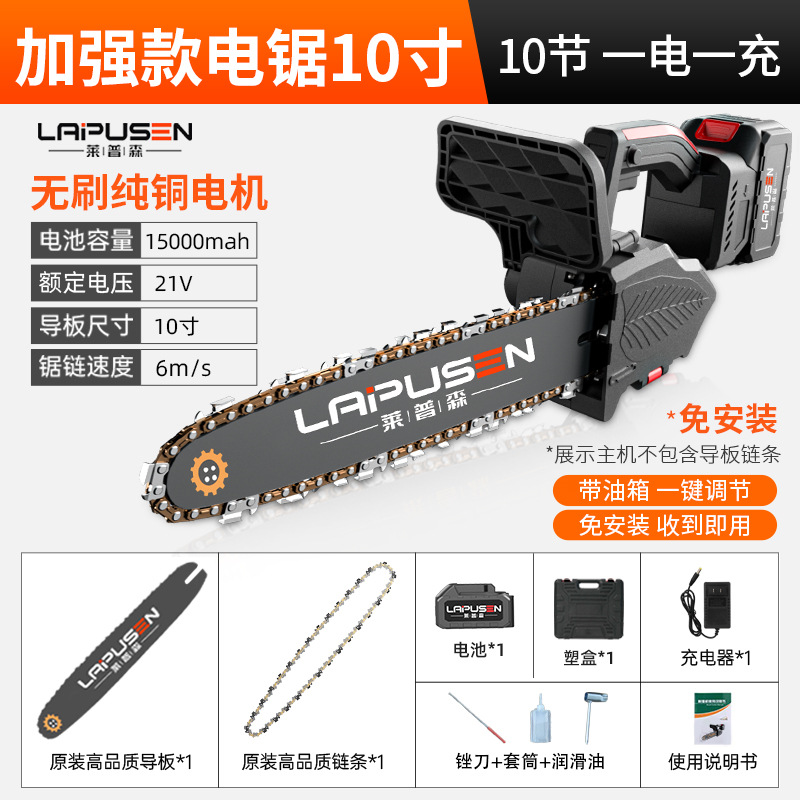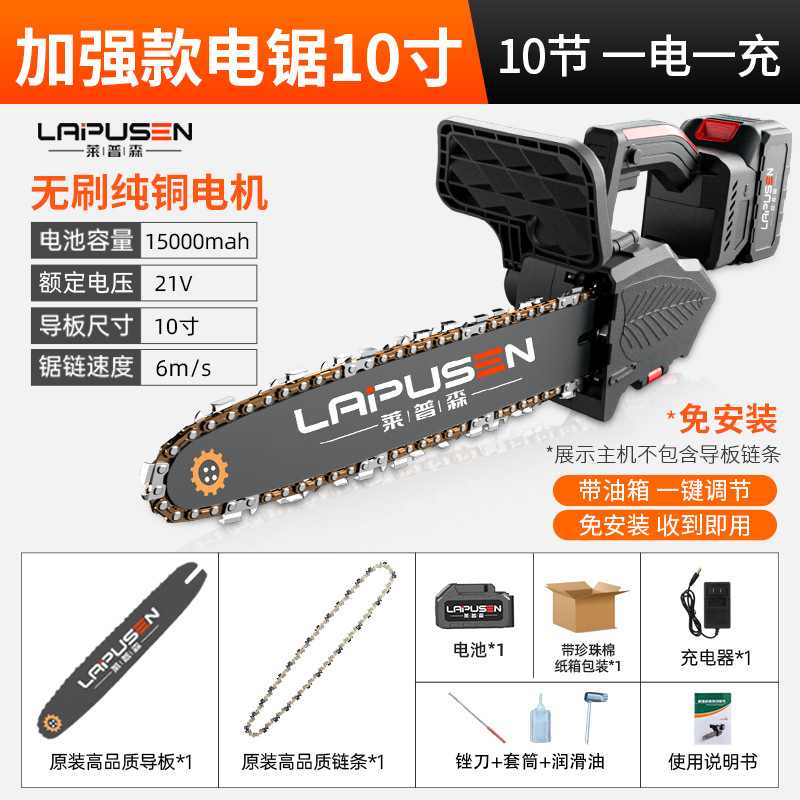 10-inch chainsaw package (15 2 batteries and 1 chain) packed in plastic box