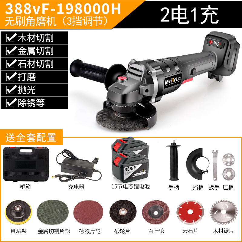 brushless angle grinder [388vf-198000h] two-power one-charge plastic box + luxury gift bag
