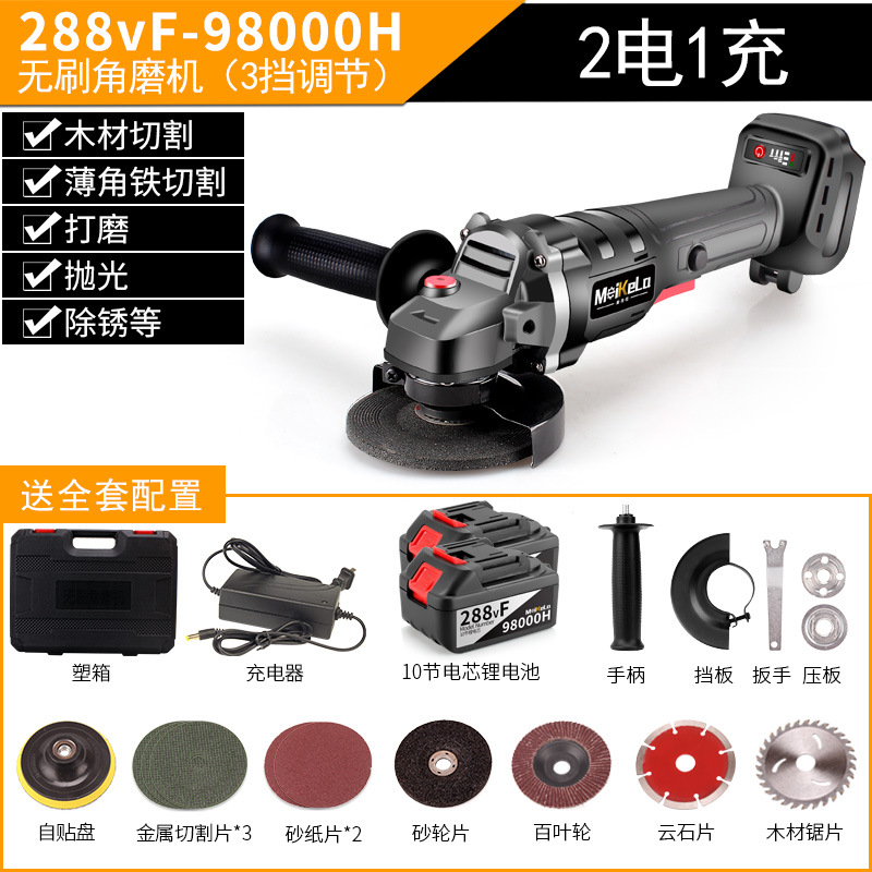 brushless angle grinder [288vf-98000h] two-power one-charge plastic box + luxury gift bag