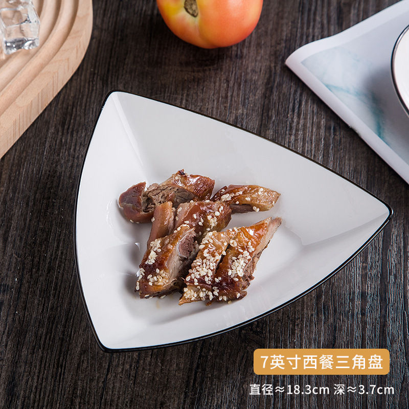 black line western food 7-inch triangle salad plate