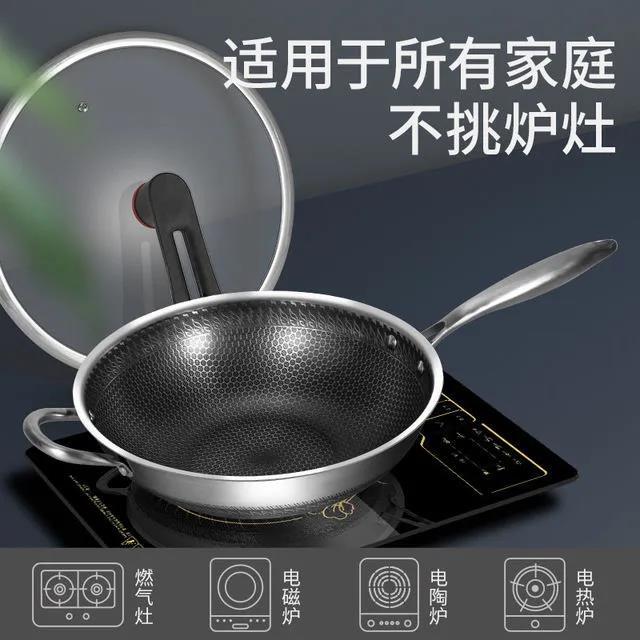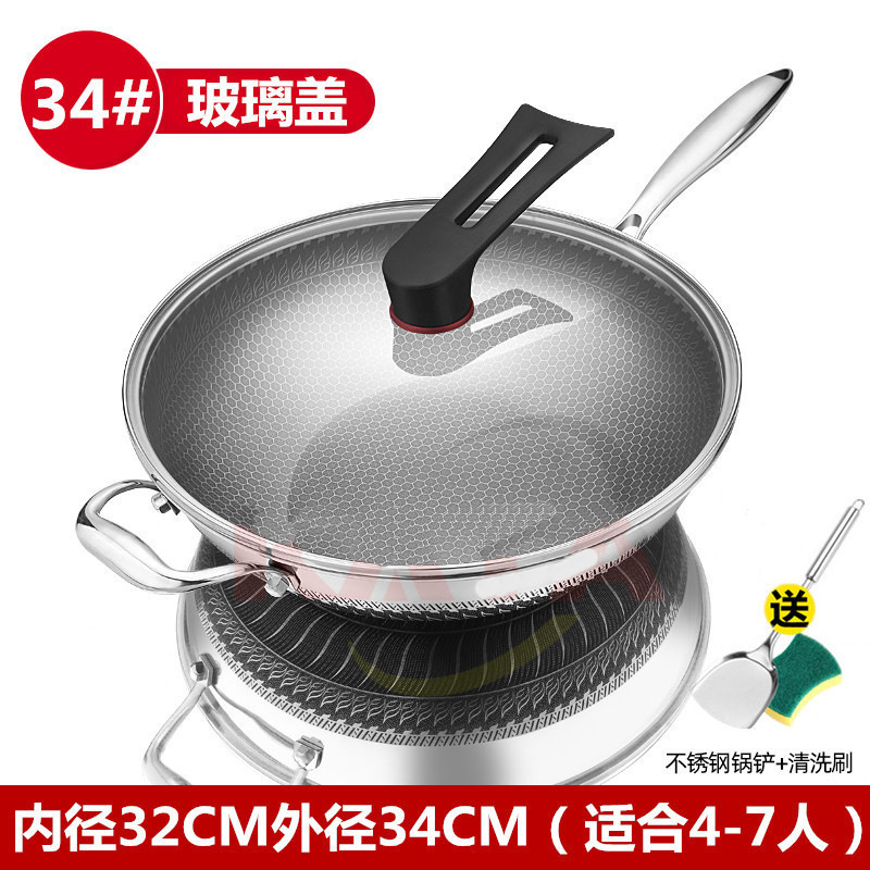upgrade 34cm double-sided physical non-stick + glass cover + steaming rack + steel shovel