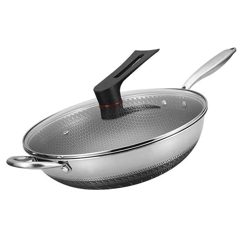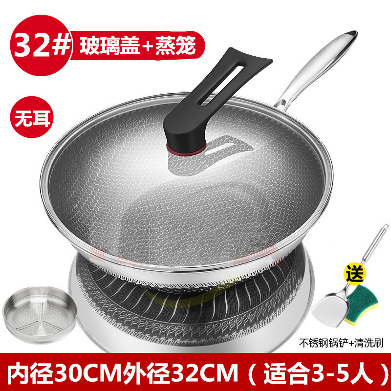 medical grade 32cm double-sided physical non-stick + glass cover + steaming rack + steel shovel