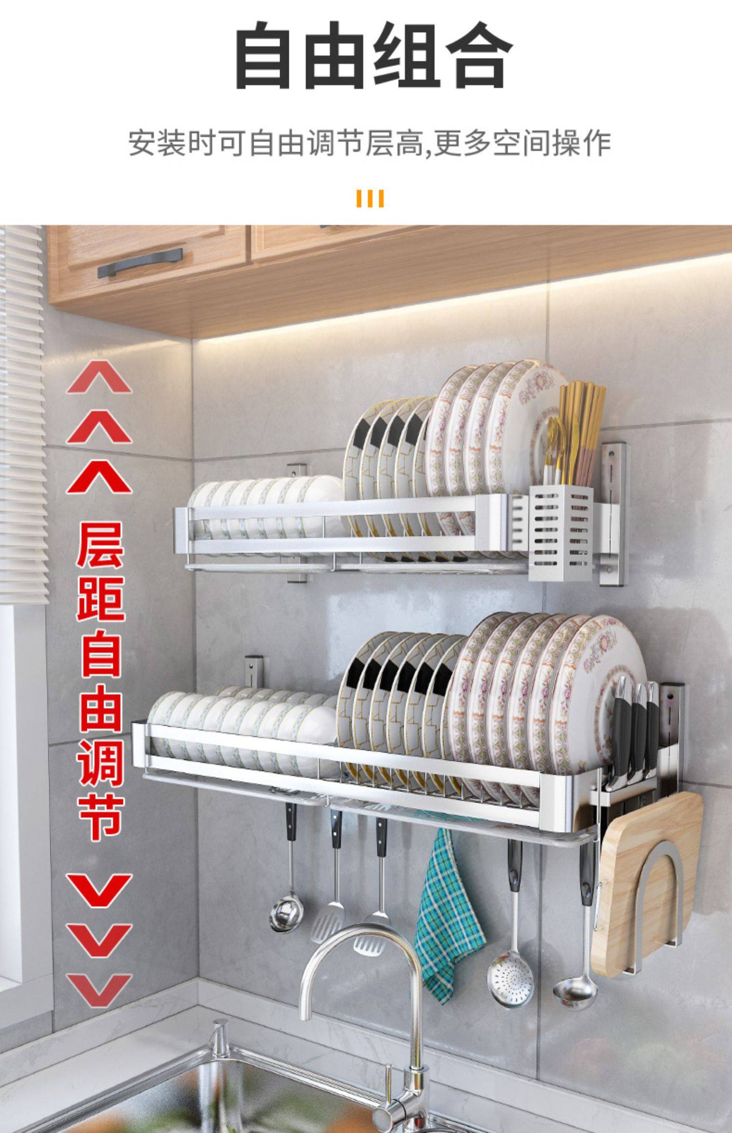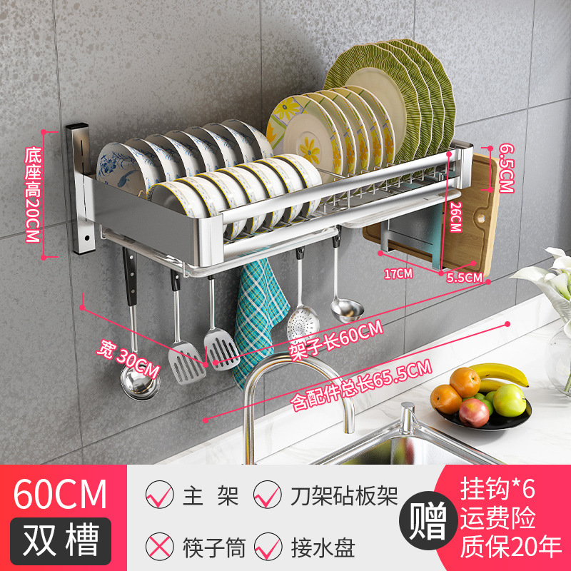 double slot-60cm long [main frame + water pan + knife rest chopping board rack] get 6 hooks for free