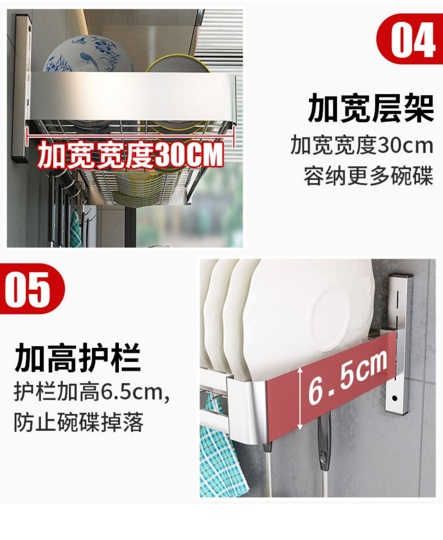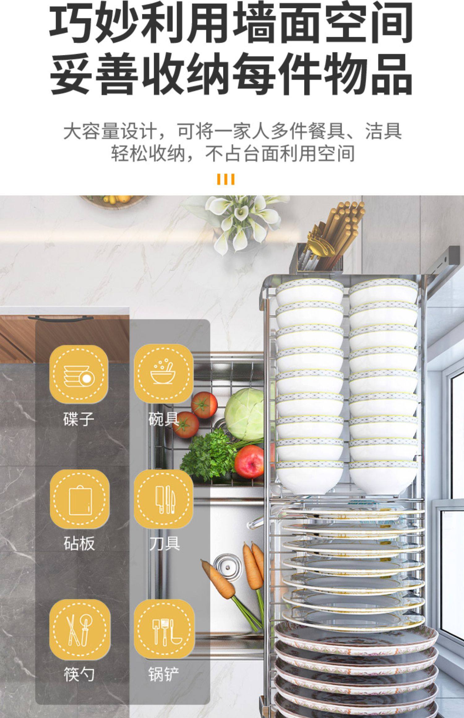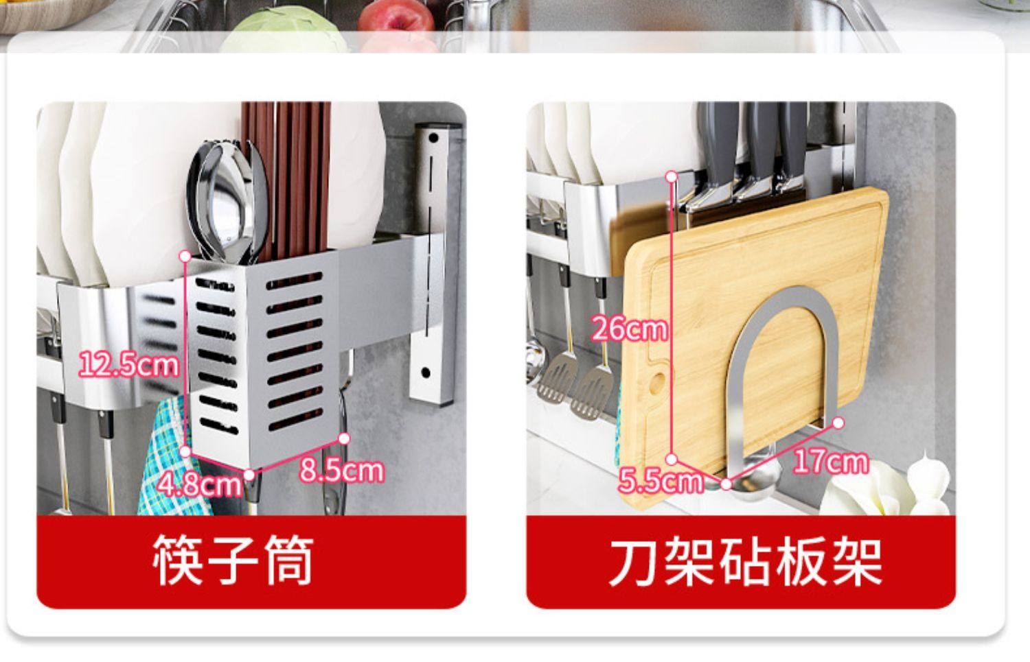 double slot-80cm long [main frame + water pan + knife rest chopping board rack] get 6 hooks for free