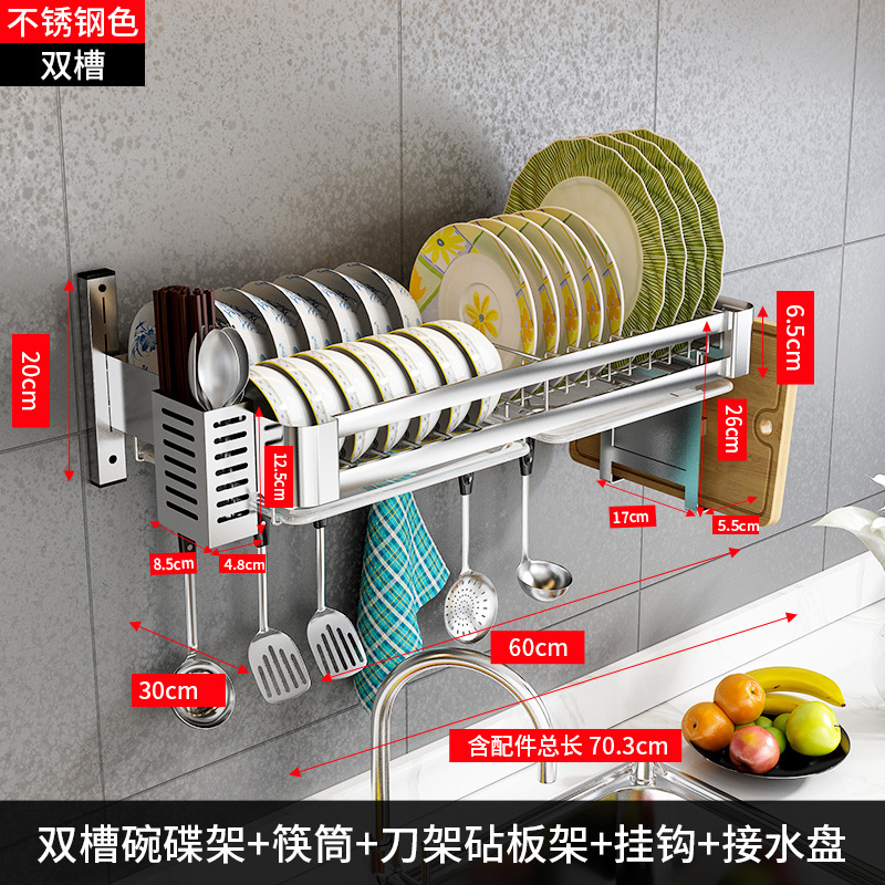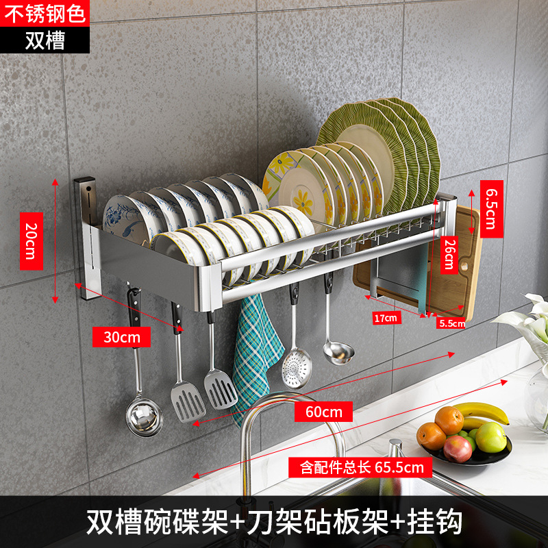 304 stainless steel [double slot 60 long + water pan] + knife rest chopping board rack