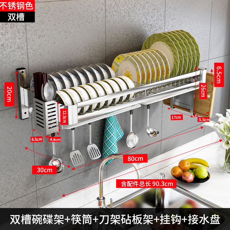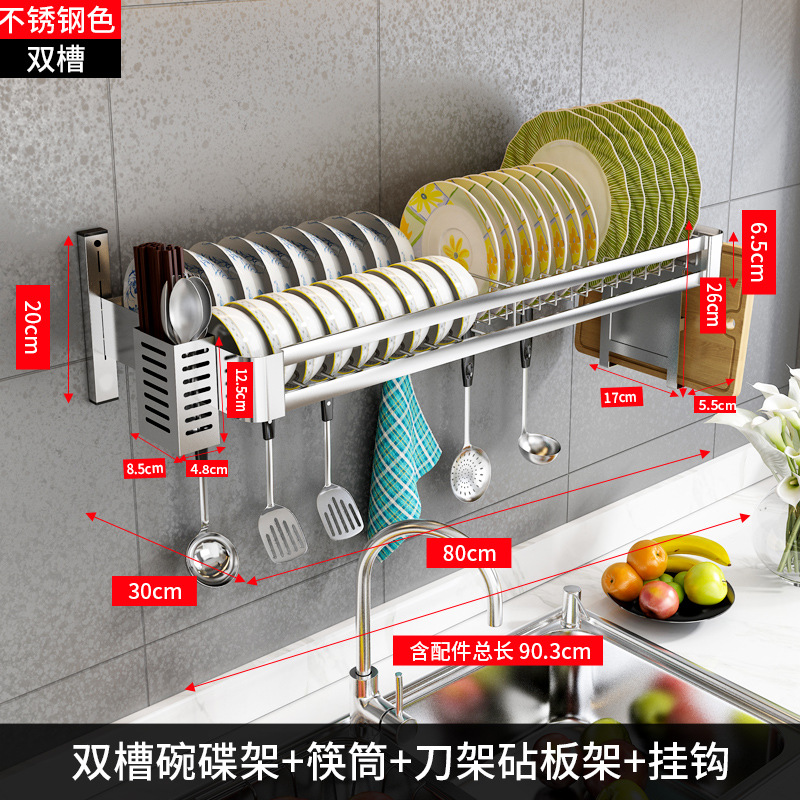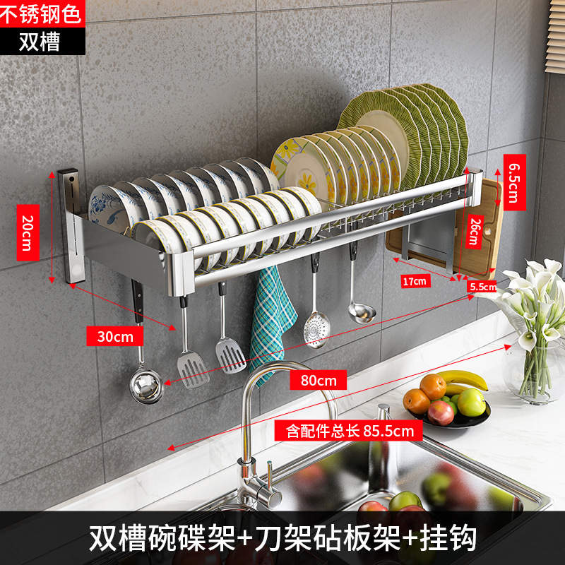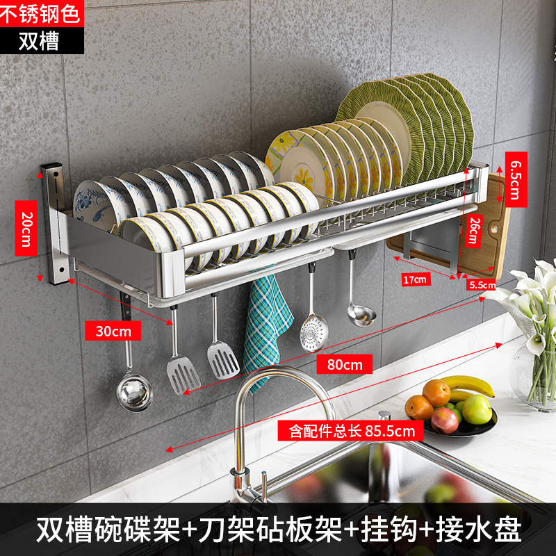 304 stainless steel [double slot 80 long + water pan] + knife rest chopping board rack