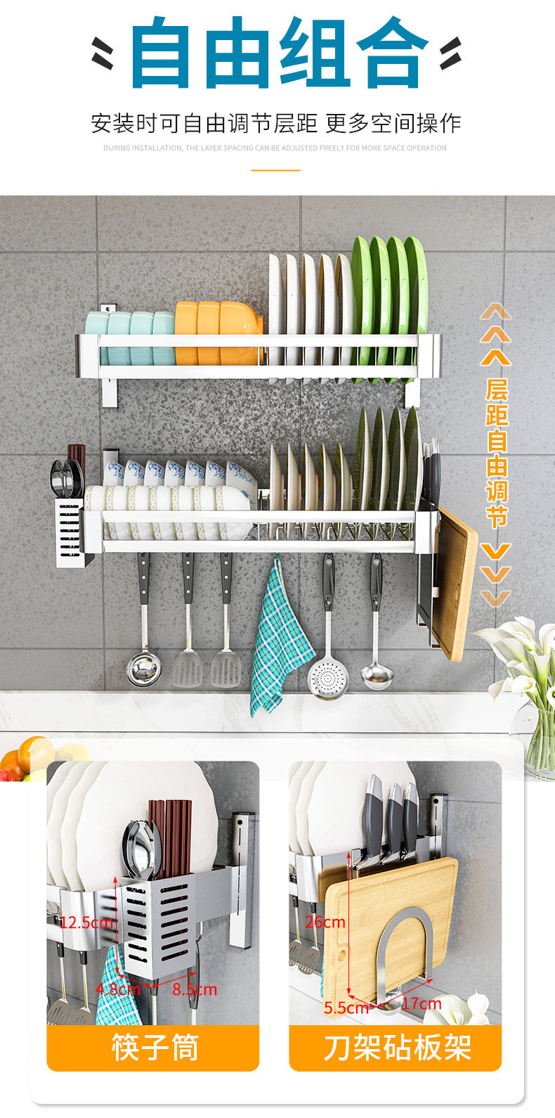 304 stainless steel [double slot 80 long] + chopstick canister + knife rest chopping board rack
