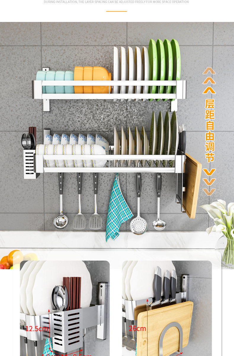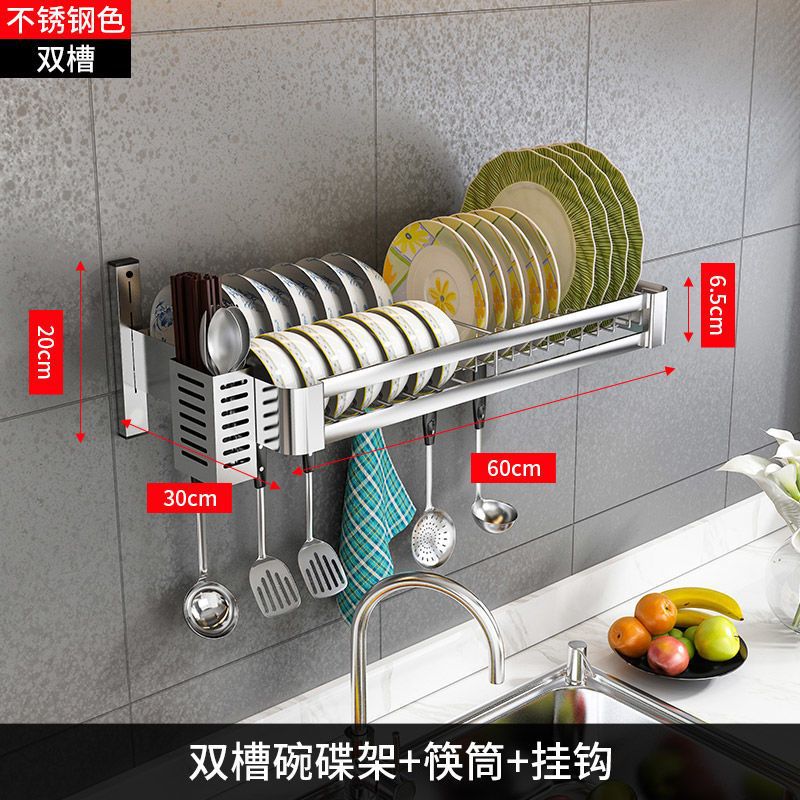 [double slot 60 long + water pan] chopstick canister knife rest chopping board rack