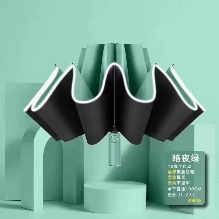 self-opening umbrella] 10 bone reverse wind storm-dark night green
