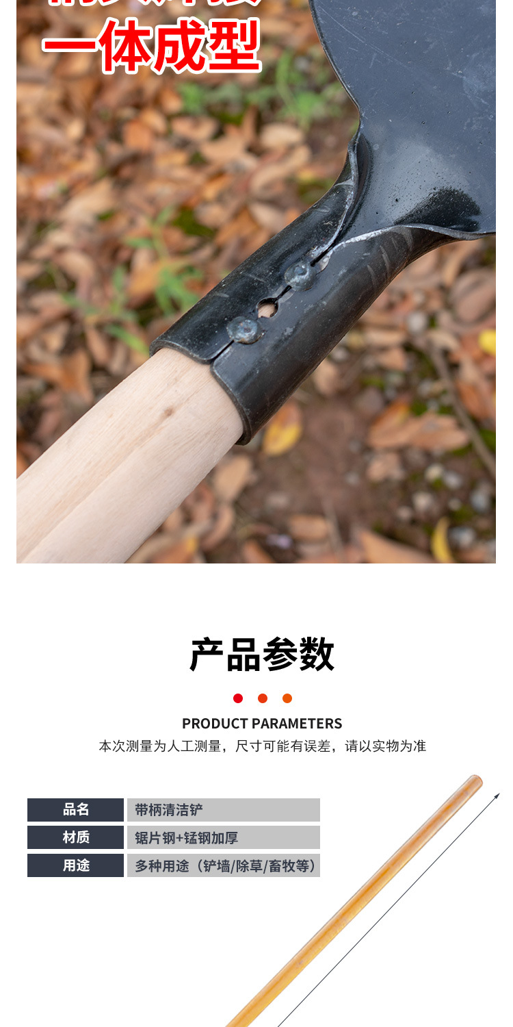 19cm thick manganese steel shovel + wooden handle