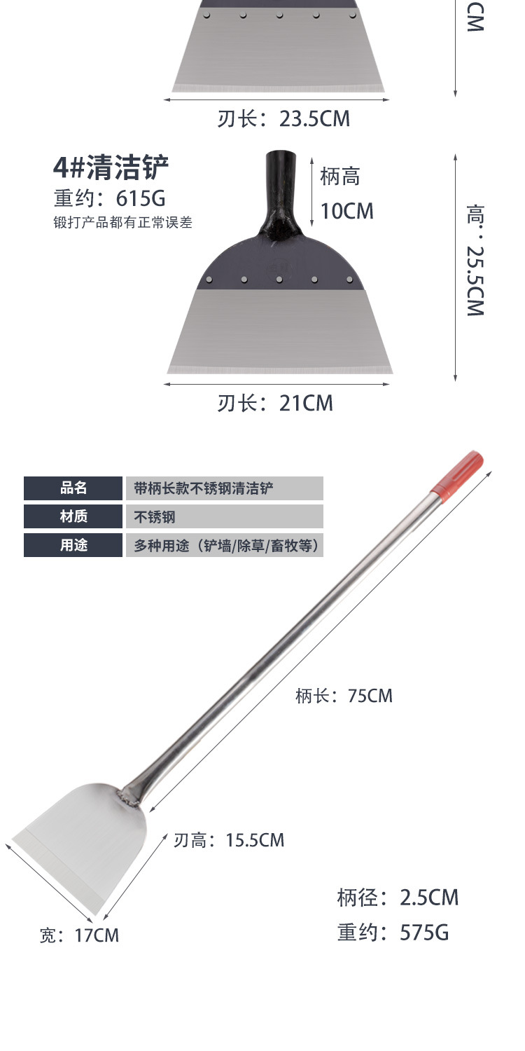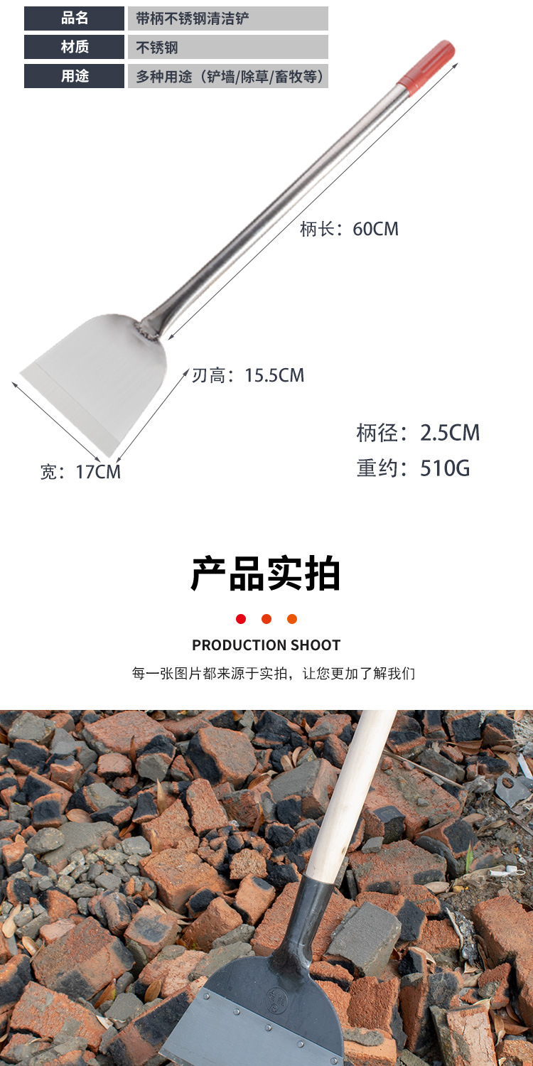 thick stainless steel with handle shovel (medium 60cm)