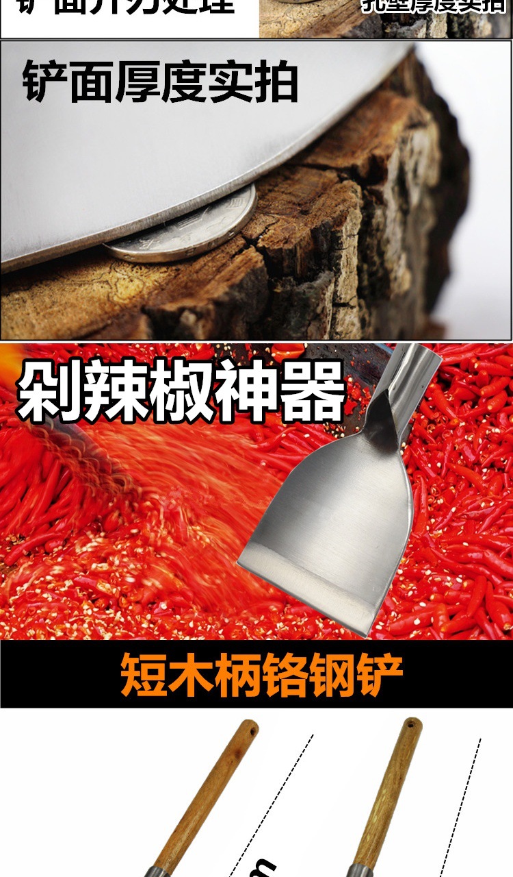 large chrome steel shovel head + 33cm long wooden handle