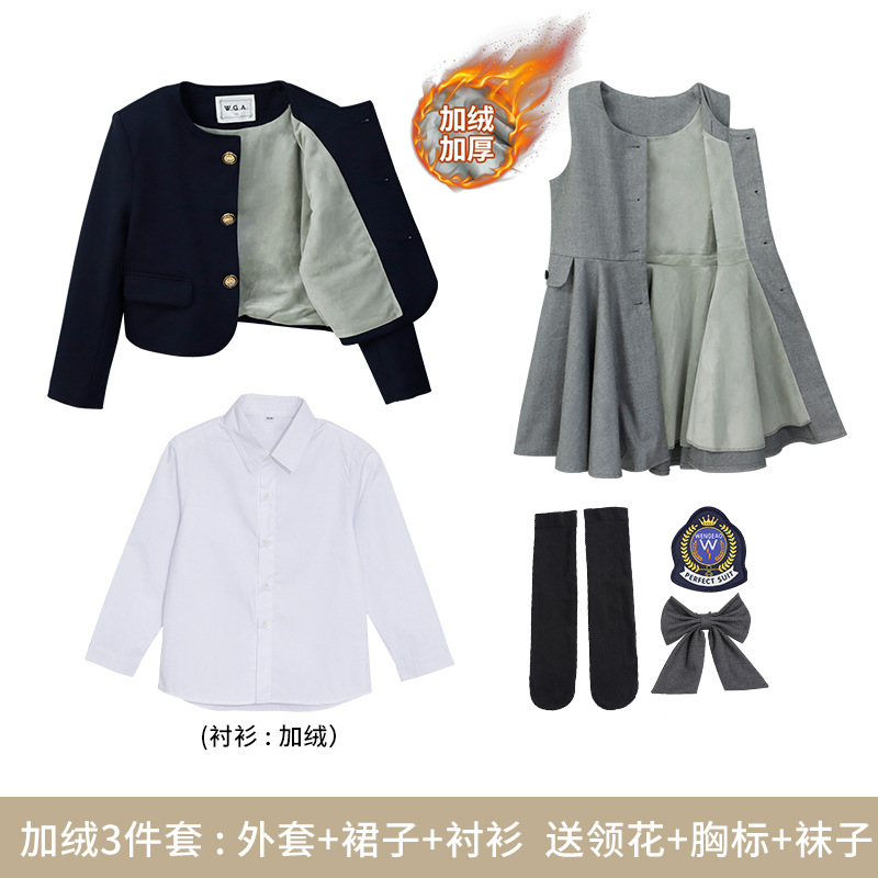 fleece-lined girl's three-piece (cotton shirt):160cm