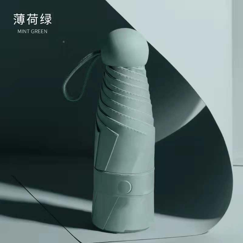 round mint green: 48.5cm * 6k five-fold umbrella