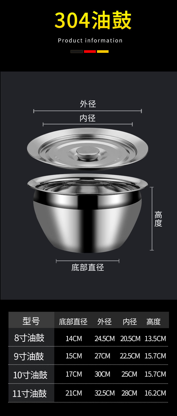 30cm colander + oil basin + dense strainer + lid/commercial