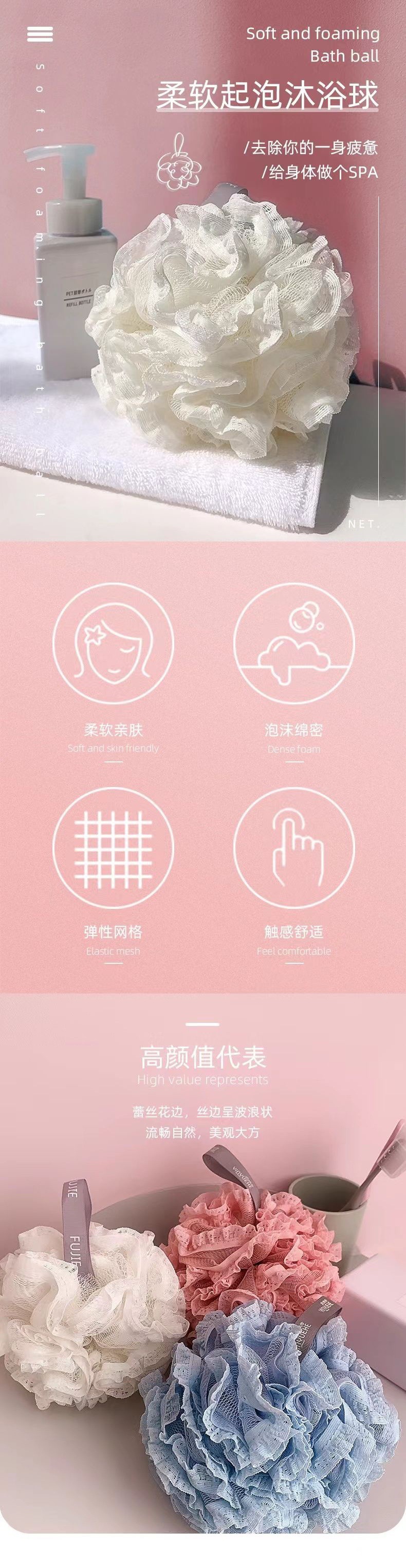 large lace style [white + blue + pink] 3 pieces in total