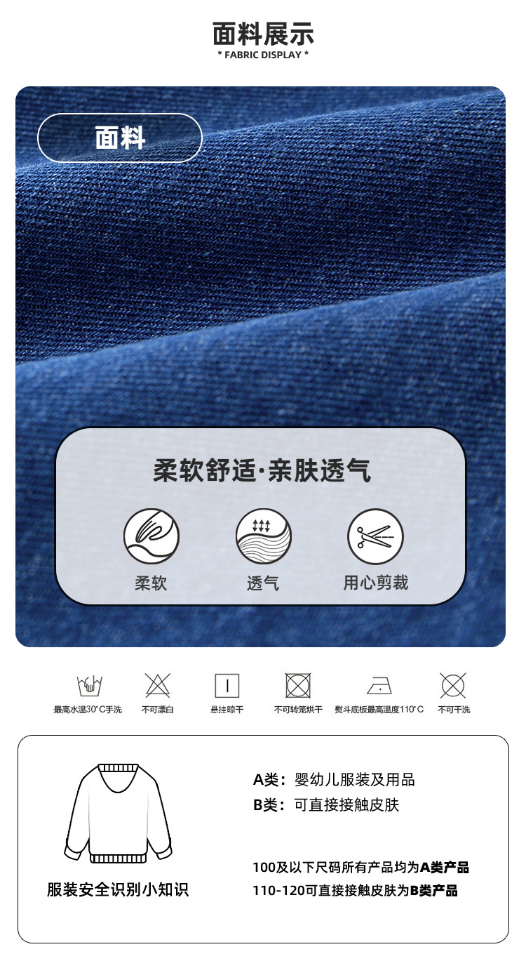 denim blue labeling suspender pants in stock: 120cm