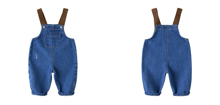 large pocket denim suspender pants in stock: 80cm