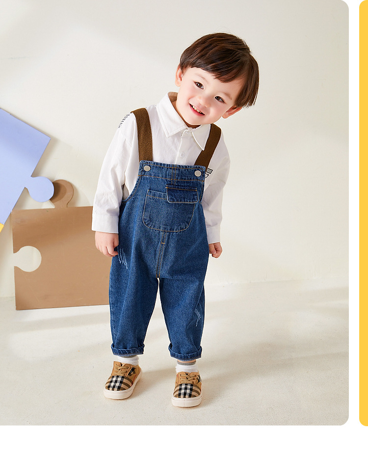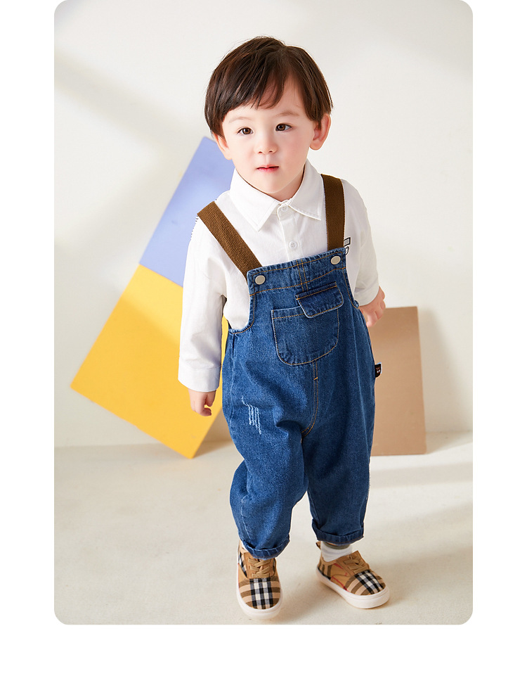 denim blue labeling suspender pants in stock: 80cm