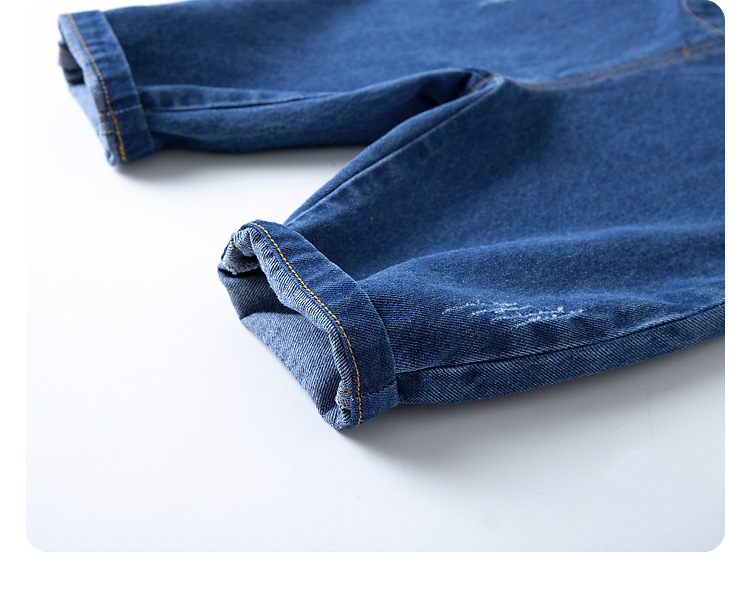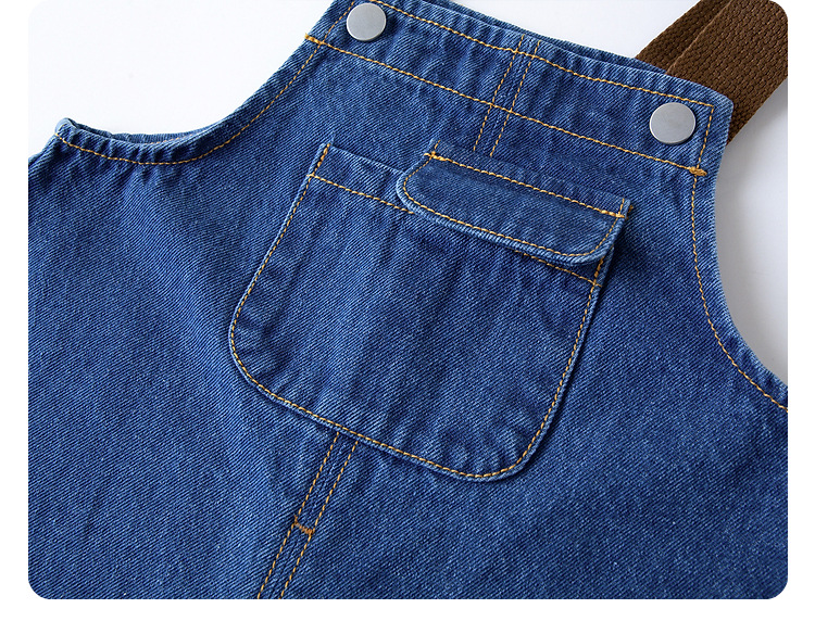 large pocket denim suspender pants in stock: 130cm