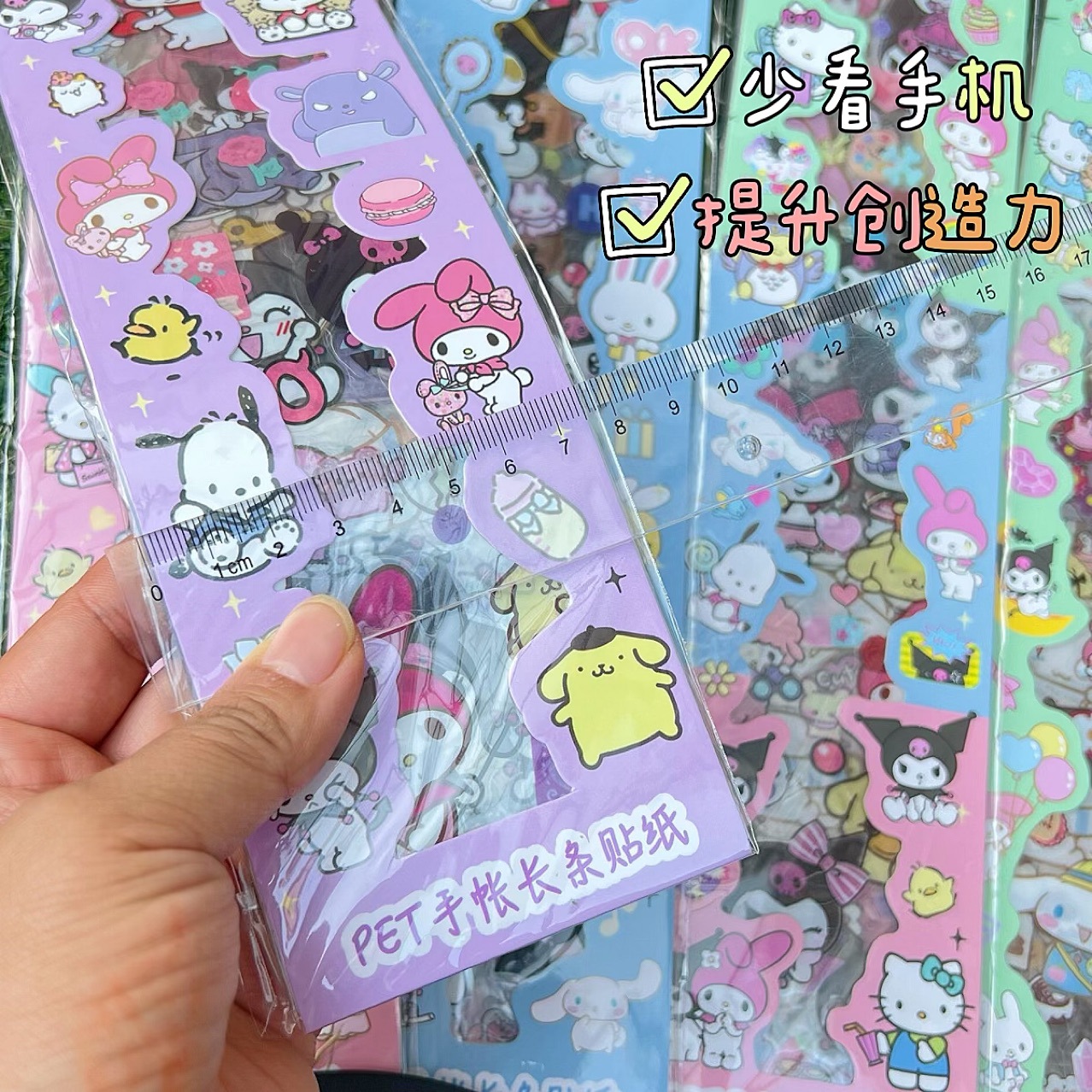 sanrio strip stickers hand ledger sticker goo card decoration diy creation pet transparent stickers stationery creative