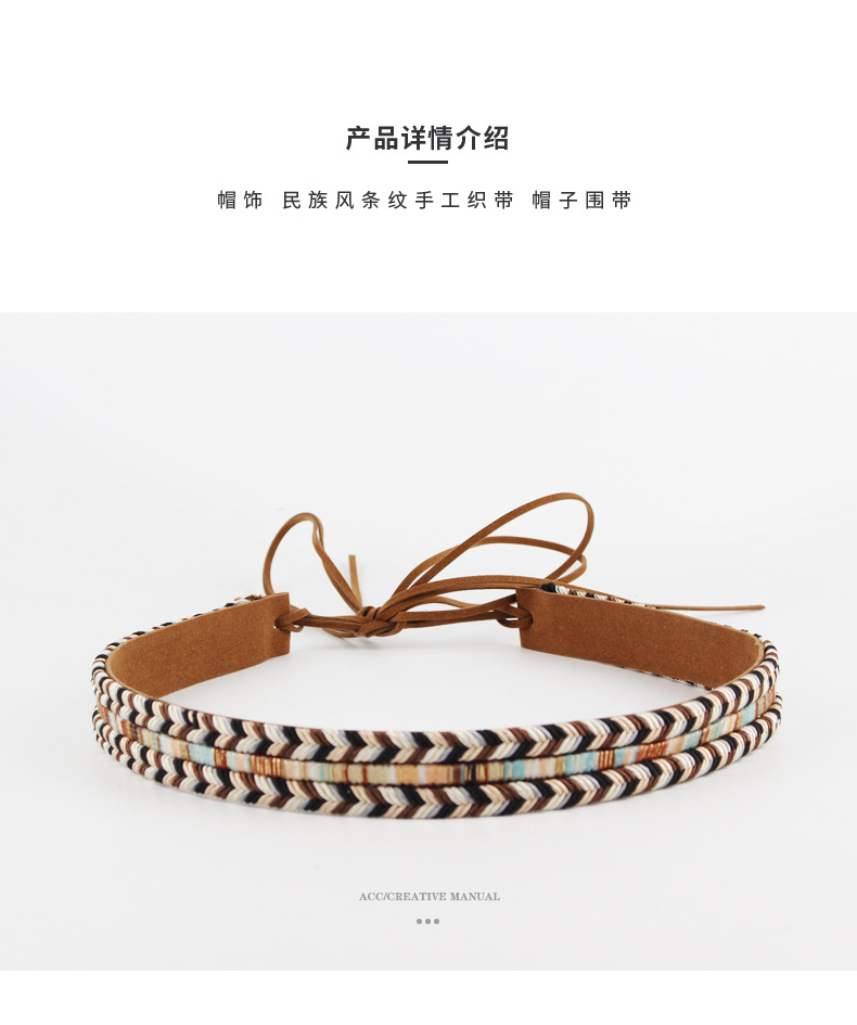 new ethnic style striped decorative belt men's and women's hat scarf personalized diy original hat ring hat accessories wholesale
