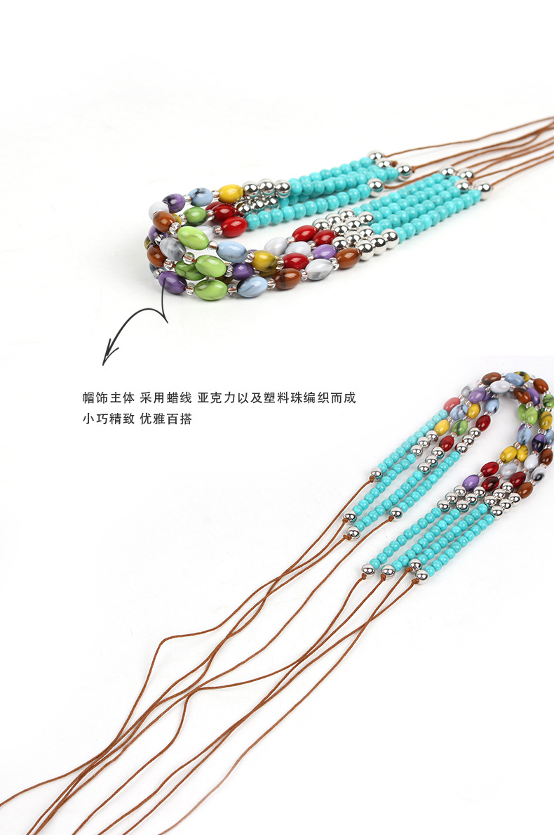 hat accessory factory wholesale color acrylic plastic beads handmade grass wear woven chain hatband decorative clothing belt