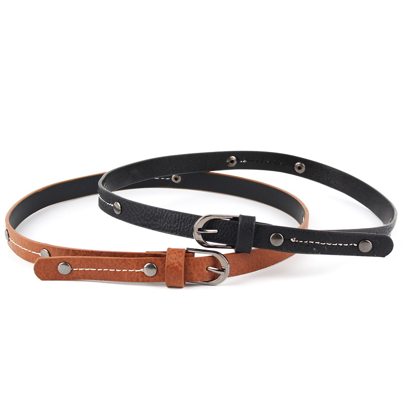 in stock wholesale handmade rivet stitching thin belt decorative metal buckle small belt men's and women's british hat ring accessories