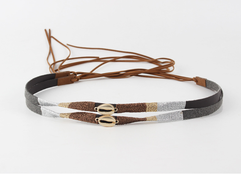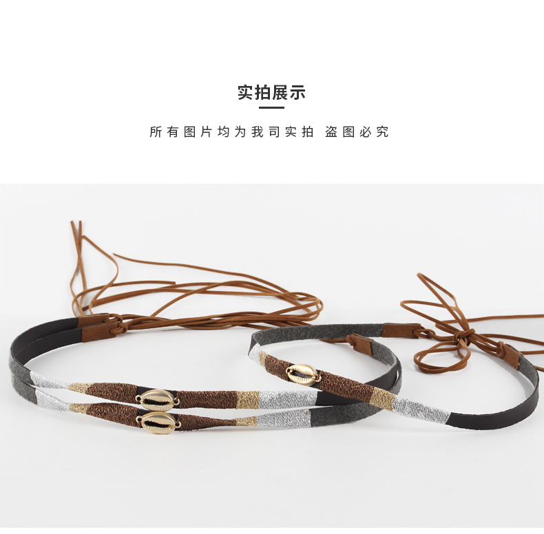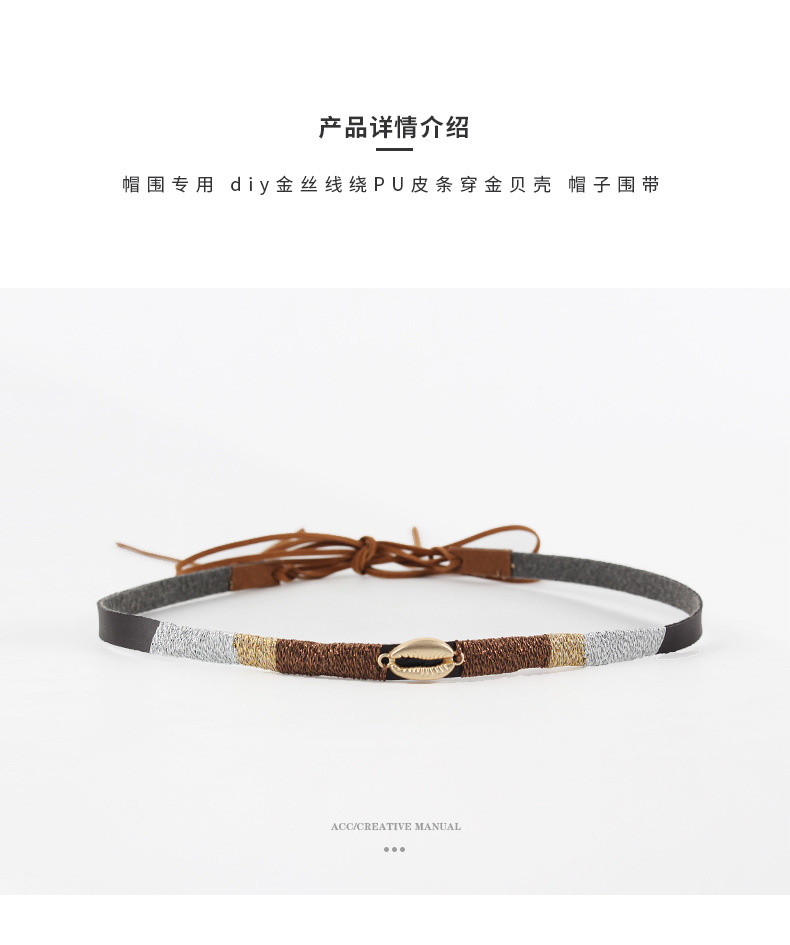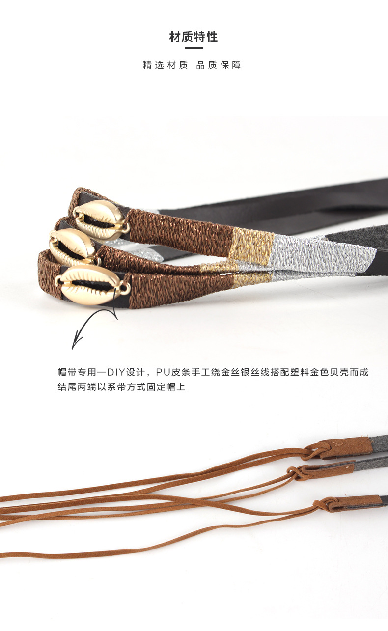 factory wholesale handmade pu soft leather winding gold thread leather rope decorative band hat scarf hat accessory gold shell hatband