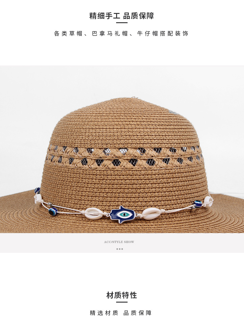 personalized diy handmade decorative rope with wax thread wearing shell + dripping oil hand eye women's straw hat band accessories hat band