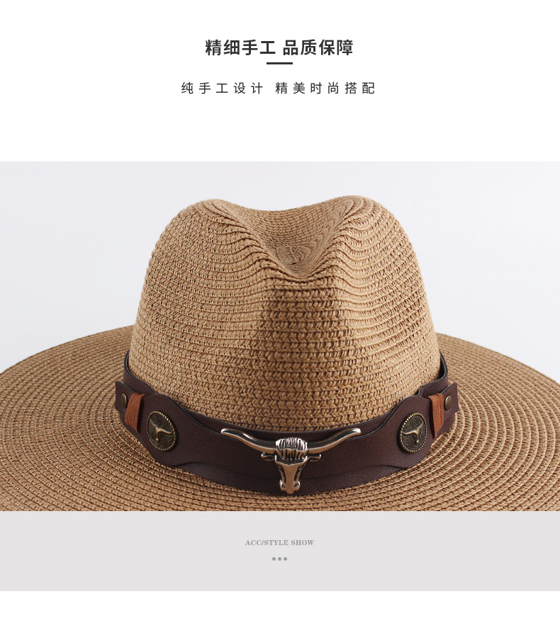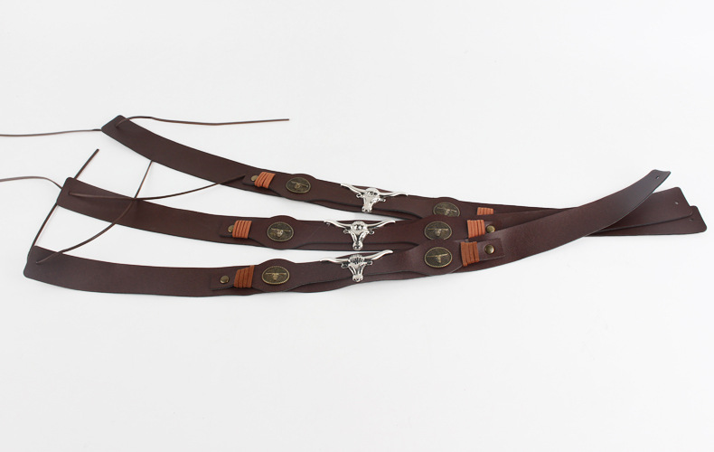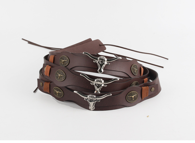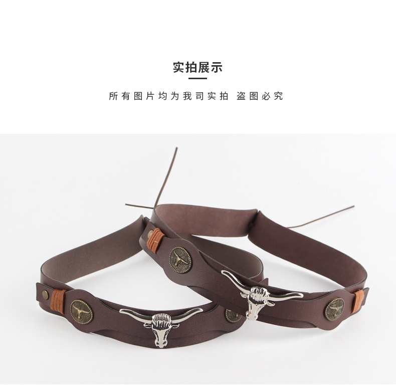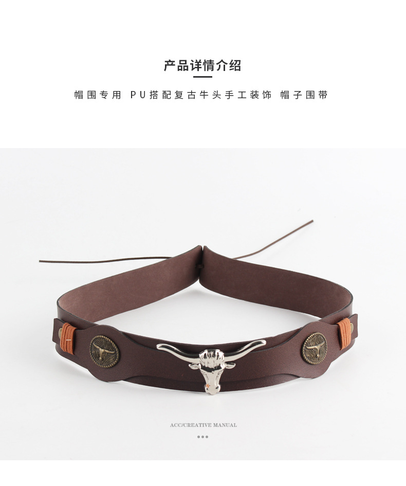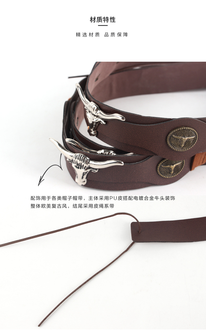 factory direct supply brown pu belt electroplating cow head decorative straw hat special hatband hat scarf retro style hat ring