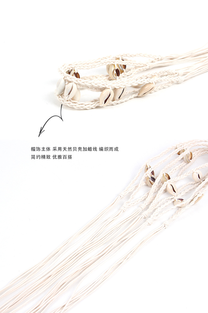 new factory wholesale hat ring summer straw hat belt accessories shell rope woven decorative band handmade diy rope