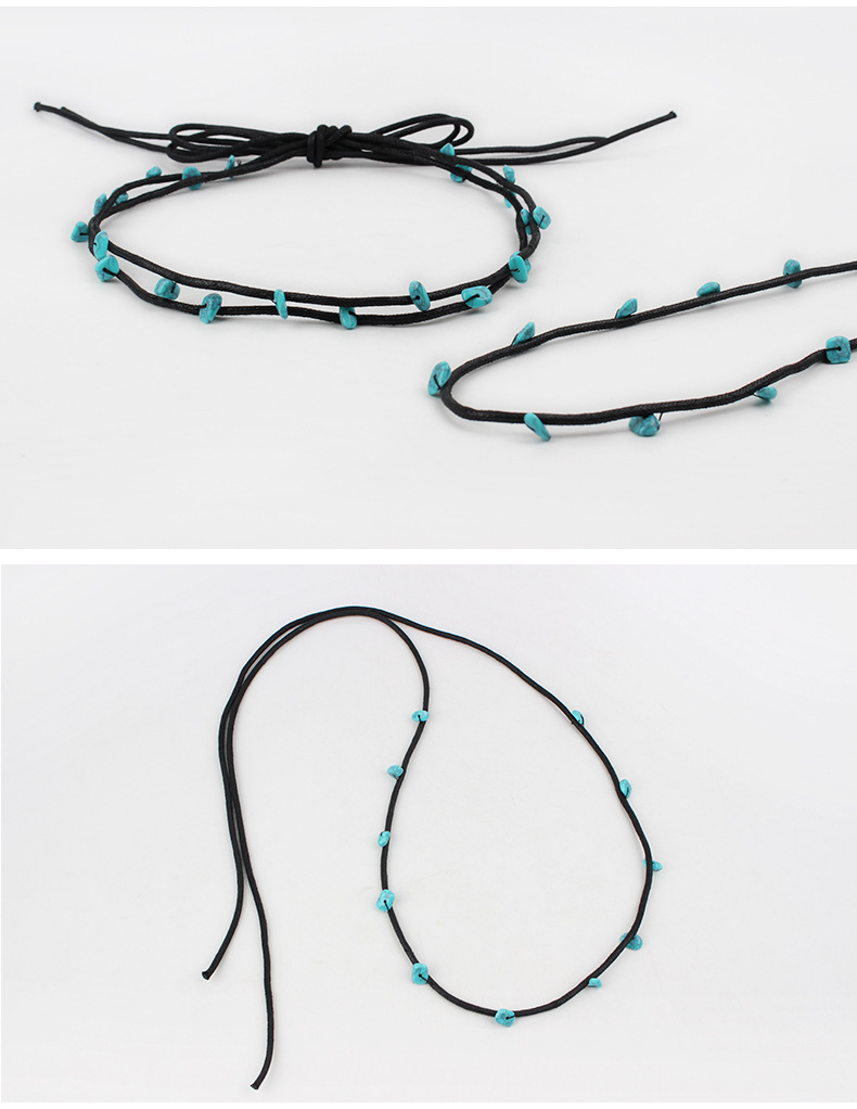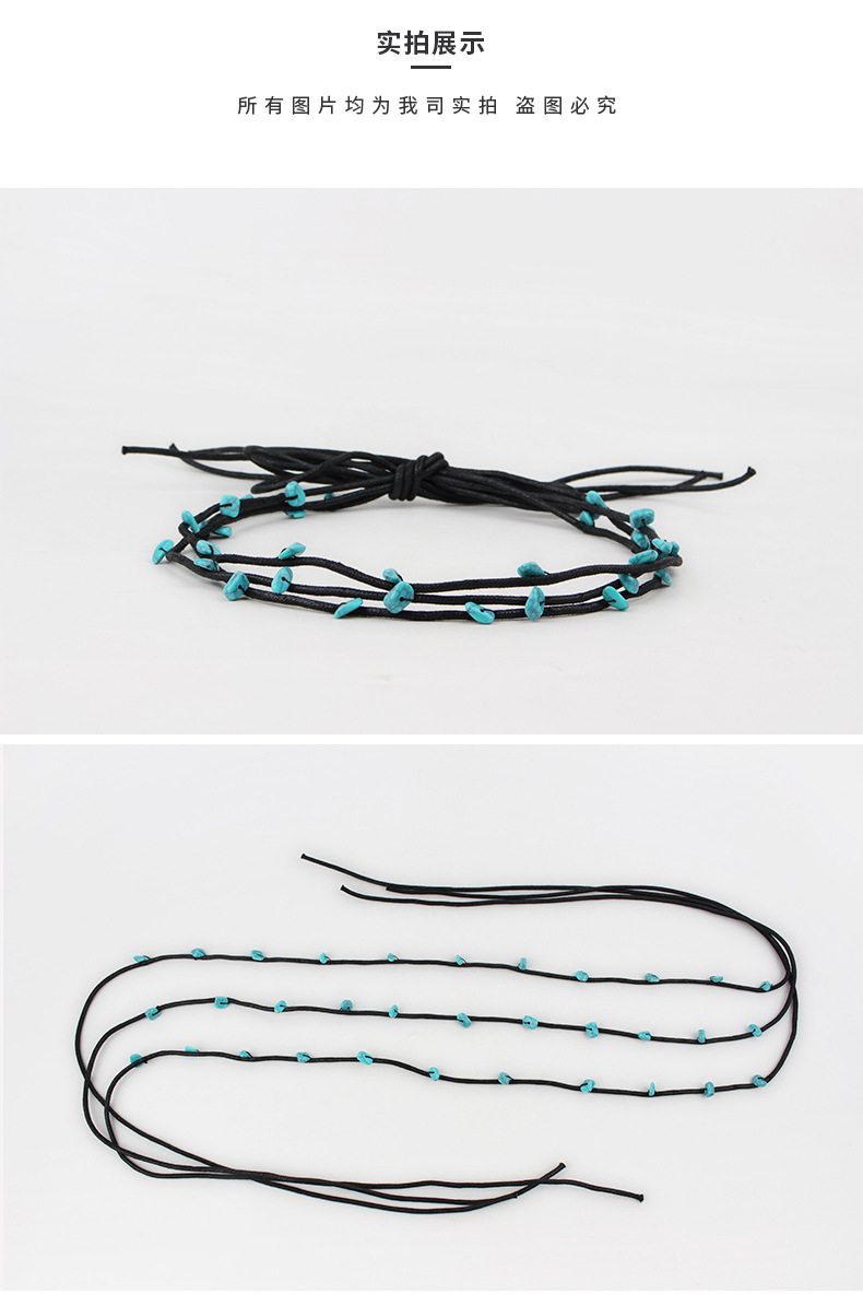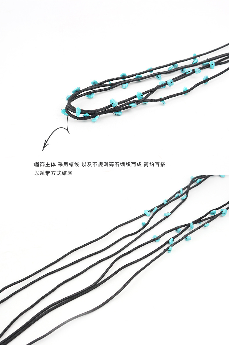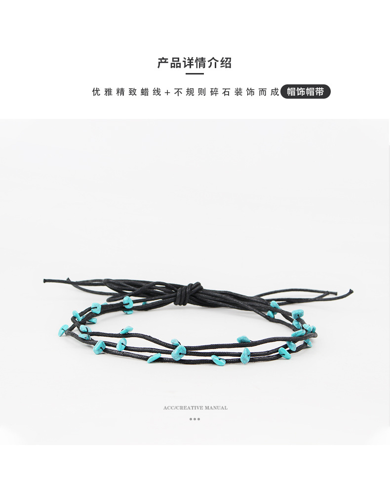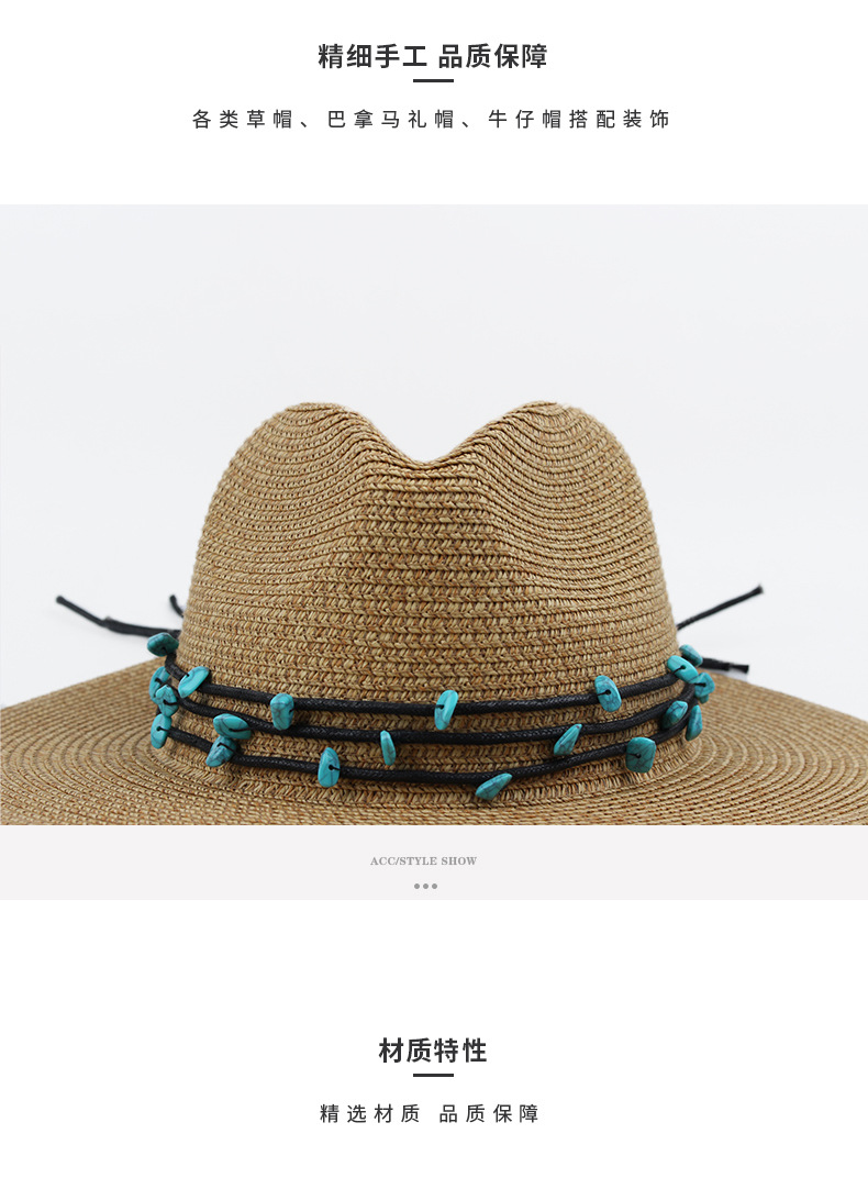 factory wholesale original diy design hand-woven blue turquoise rope with decorative straw hat scarf accessories hat ring belt