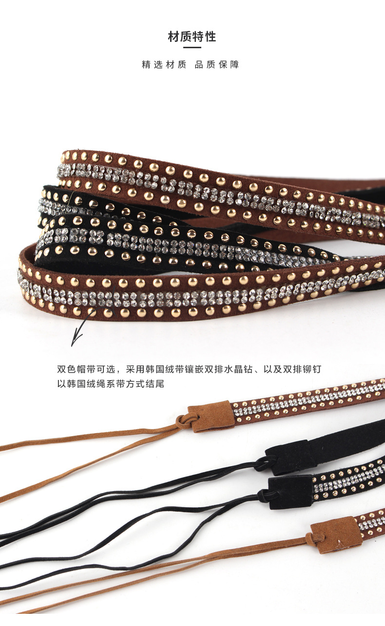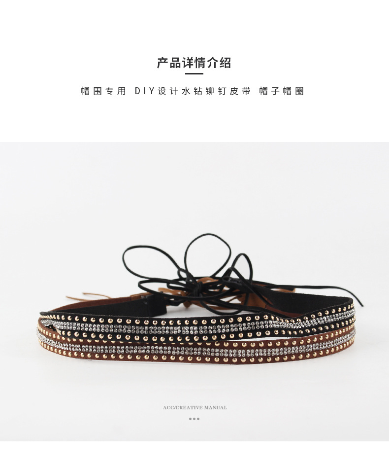 fashion original belt decoration double row rivet rhinestone craft accessories top hat all-match hat ring straw hat bib jewelry