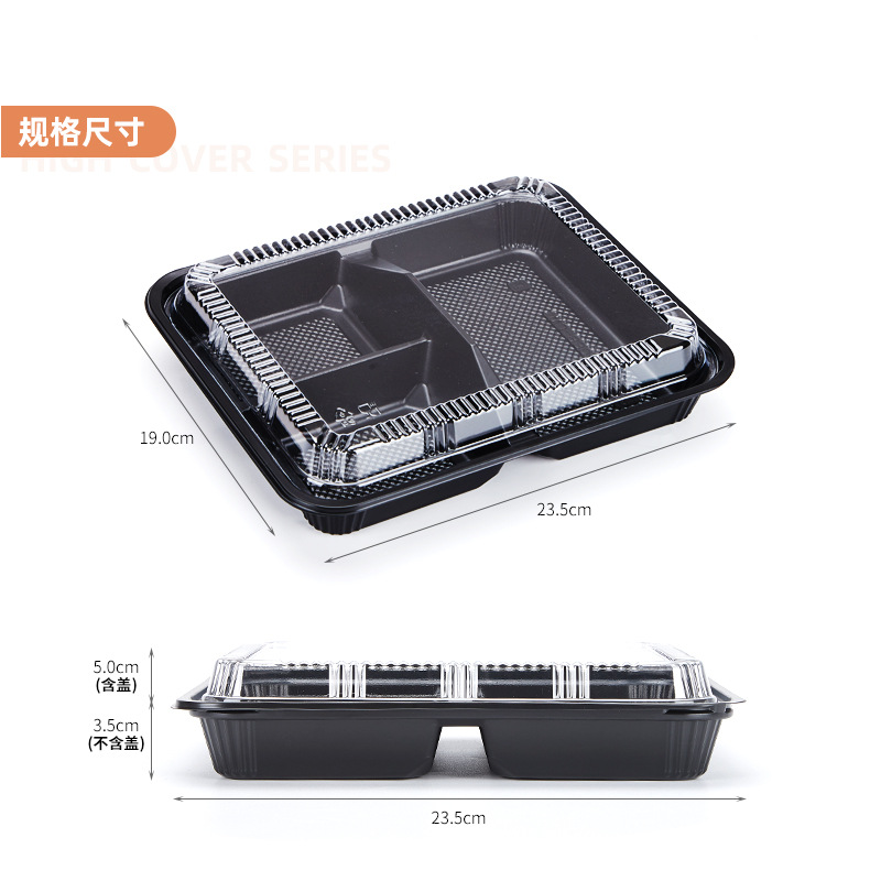 disposable fast food container 3 grid three grid takeaway packing box divided lunch box bento box rectangular bento lunch box