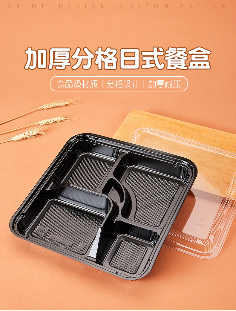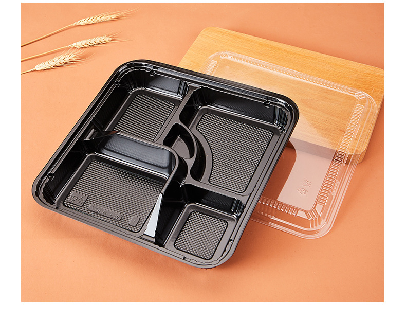 disposable fast food container 5 grid five grid takeaway packing box divided lunch box bento box square japanese bento lunch box